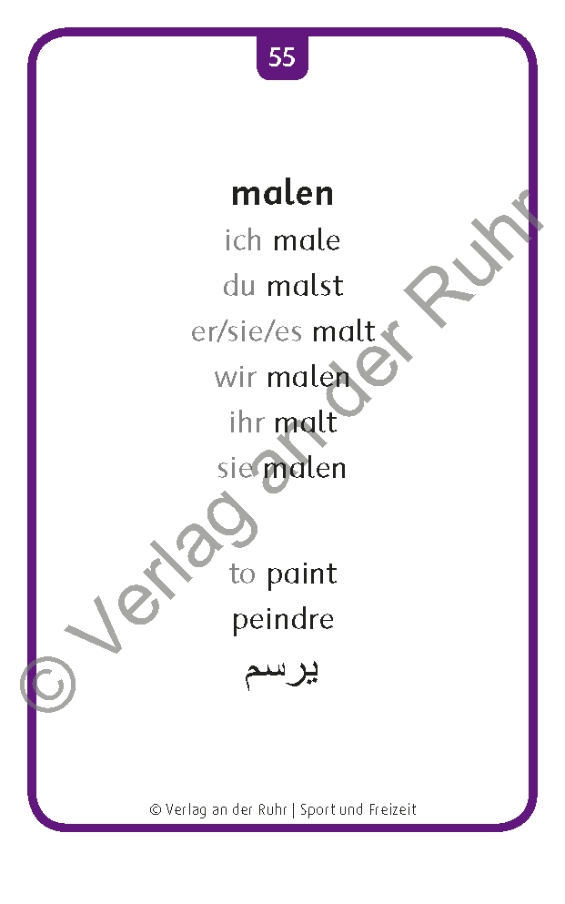 | Schlagworte | Arabisch Bild und Text • Asyl • Besser lernen durch Bilder • Besser Sprachen lernen durch Bilder • Bilder DaF • Bilder DaZ • Bildkarten • DAF • DaF-Unterricht • DAZ • DaZ-Unterricht • Deutsch • Deutsch als Fremdsprache • Deutsch als Zweitsprache • Deutsch als Zweitsprache schneller Erfolg • Deutsch Bild und Text • Deutsch lernen • Deutsch lernen mit Bildern • Durch Bilder Deutsch lernen • Ehrenamtliche Flüchtlingshelfer • Einfaches Prinzip Deutsch lernen • Einwanderung • Englisch Bild und Text • Erzieherinnen • Französisch Bild und Text • Fremdsprachen • Gutes Material für DaZ • Integrationsklassen • Integrationskurs • Jugendliche • Karteikarten • Kinder • Kindergarten- Leiterinnen • Kindertagesstätten • Kita • Kita-LeiterInnen • Lehrer • Migranten • Migration • Nullsprachler • regelunterricht • Schule • Schüler • Sport und Freizeit • Sprache • Sprachförderung • Sprachlernklasse • Sprachlernkurs • Themengebiet Freizeit • Themengebiet Sport • Trainingsmaterial • Übungsmaterial • Unterricht • Unterrichtsvorbereitung • Verlag an der Ruhr Bildkarten • Vorbereitungsklassen • Willkommensklassen • Zuwanderer • Zuwanderung |