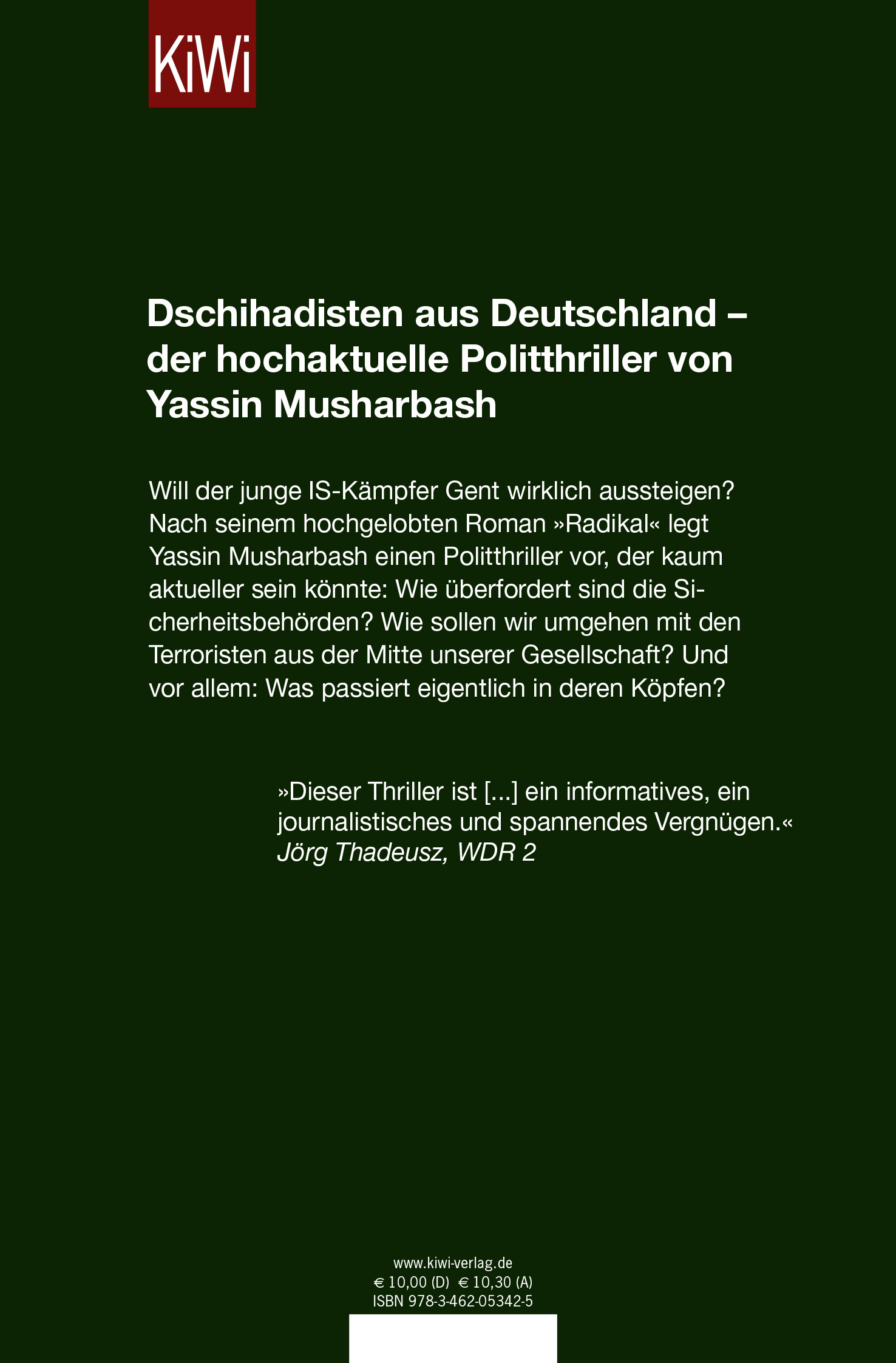 | Schlagworte | Aussteiger • Dschihad • IS-Islamischer Staat • Kalifat • Polit-Thriller • Radikalisierung • Sicherheitsbehörden • Syrien • Terrorismus • Verfassungsschutz |
