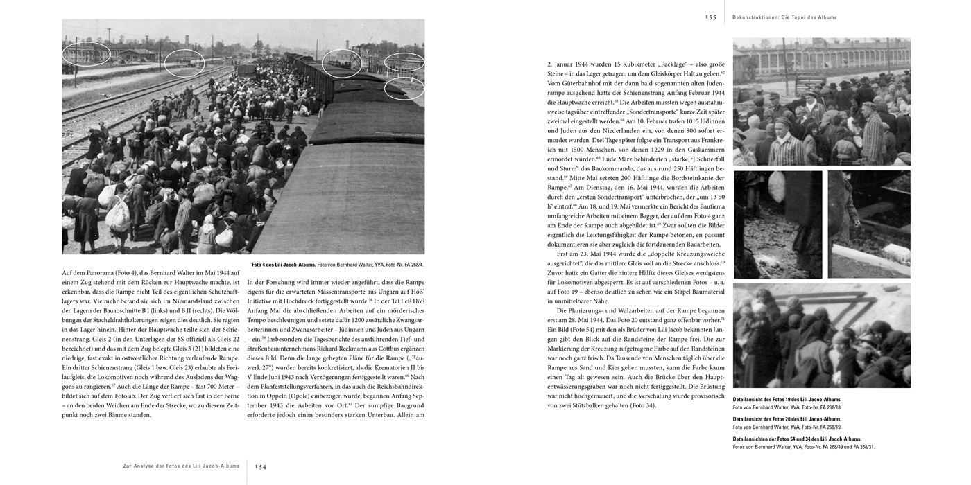 Neben Zeitzeugen-Berichten Überlebender, Akten und Dokumenten sind es die Schwarz-Weiß-Fotografien des „Auschwitz-Albums“, die uns die Gräueltaten des Holocausts sichtbar machen und sich in unser ikonographisches Gedächtnis eingebrannt haben. Die SS-Fotografen Bernhard Walter und Ernst Hofmann haben die Abläufe im Konzentrationslager Auschwitz-Birkenau – Ankunft an der Rampe, Weiterleitung der Deportierten, Massenraub ihrer letzten Habe – dokumentiert.