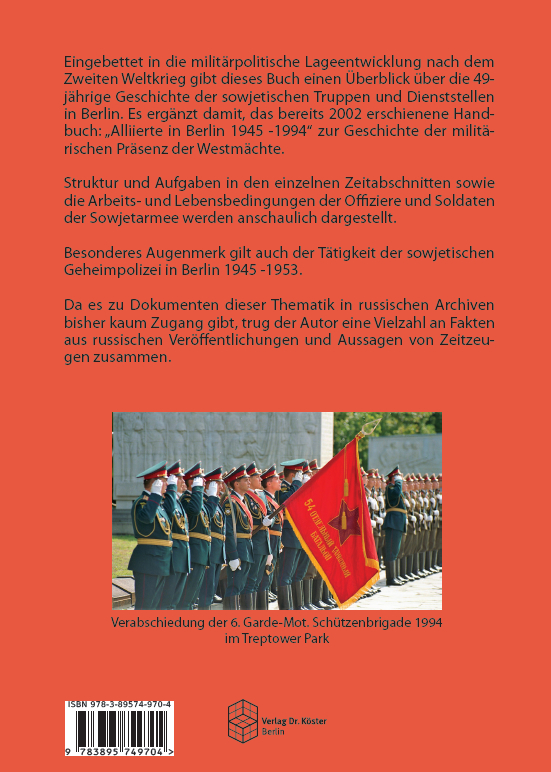 | Schlagworte | Berlin • Kalter Krieg • Ostberlin • Sowjetische Garnisonen • Sowjetische Militäradministration • Sowjetischen Militäradministration • Vier-Mächte-Status |