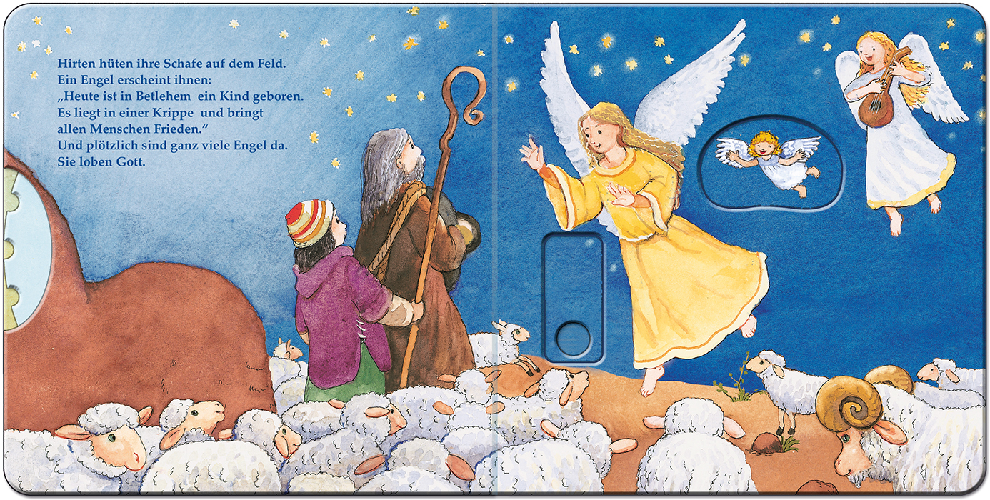 Einfache Texte und stimmungsvolle Illustrationen erzählen Mädchen und Jungen die biblische Weihnachtsgeschichte.