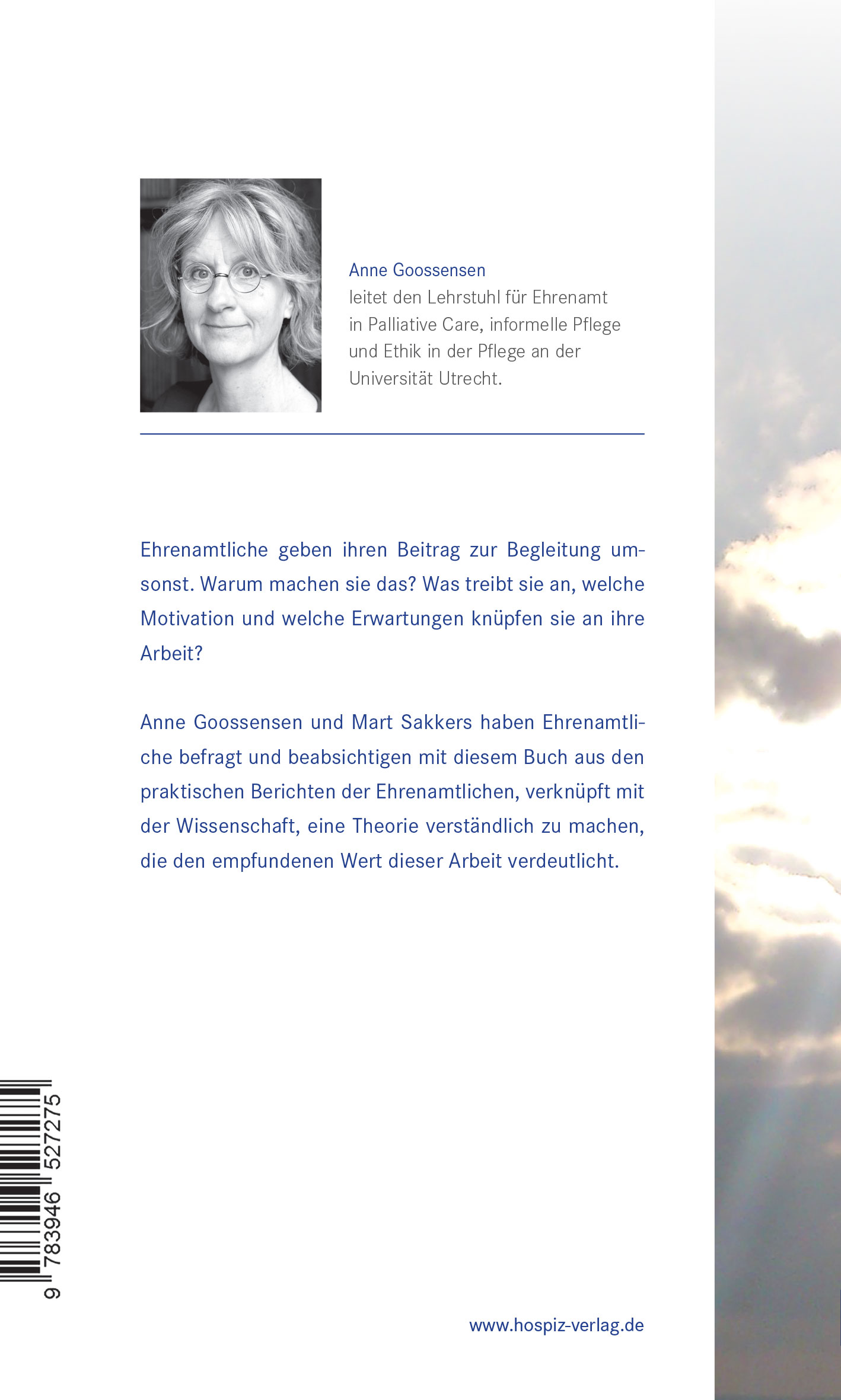 Anne Goossensen und Mart Sakkers haben Ehrenamtliche befragt und beabsichtigen mit diesem Buch aus den praktischen Berichten der Ehrenamtlichen verknüpft mit der Wissenschaft eine Theorie verständlich zu machen, die den empfundenen Wert dieser Arbeit verdeutlicht.