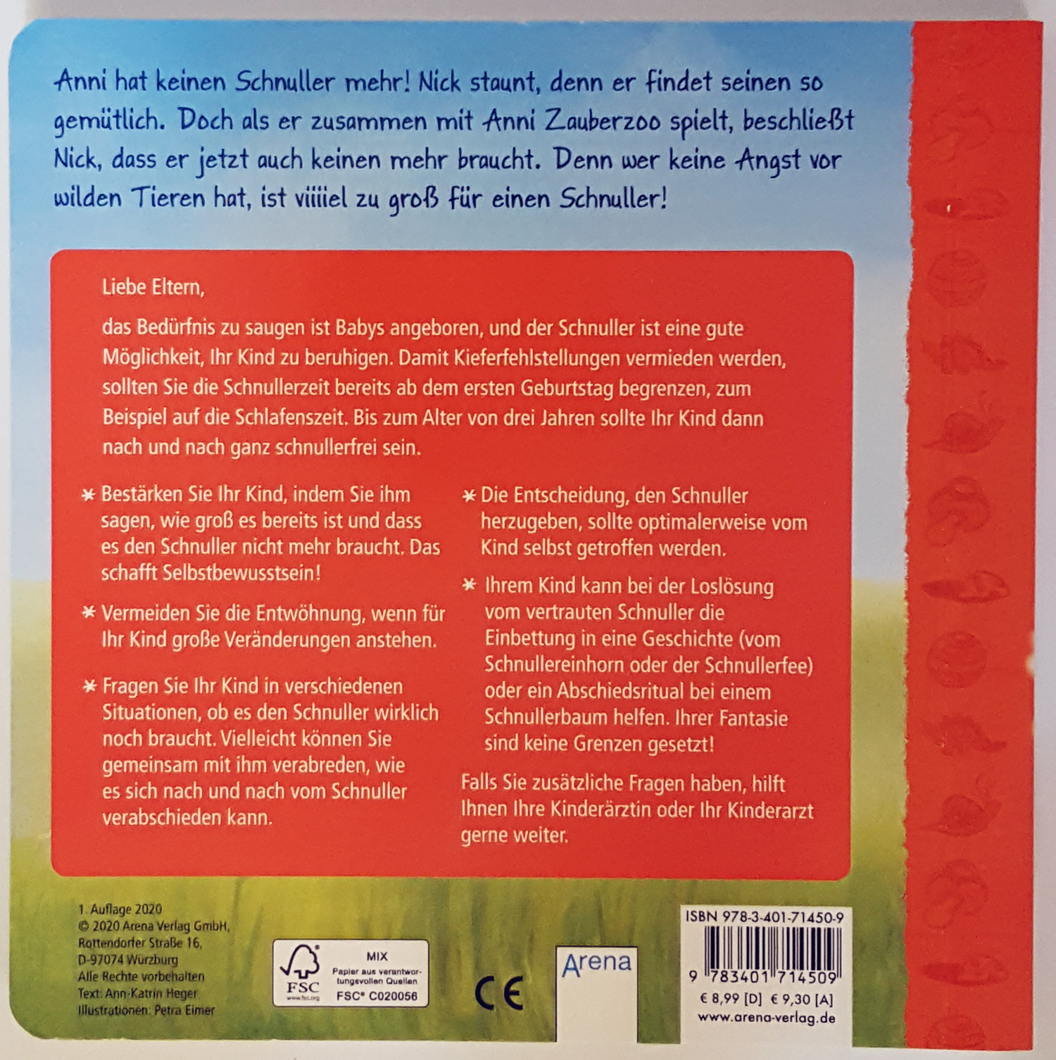 Anni hat keinen Schnuller mehr! Nick staunt, denn er findet seinen so gemütlich. Doch als er zusammen mit Anni Zauberzoo spielt, beschließt Nick, dass er jetzt auch keinen Schnuller mehr braucht. Denn wer keine Angst vor wilden Tieren hat, ist viiiiel zu groß für einen Schnuller!