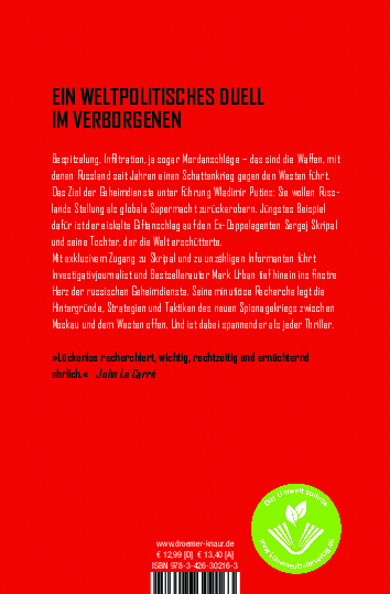 Doch das Attentat auf Sergej Skripal ist nur die Spitze des Eisbergs - Teil eines verborgenen Spionage-Kriegs zwischen Ost und West, wie Mark Urban zeigt. Seit Jahrzehnten berichtet er als BBC-Reporter über die Schattenwelt der Spionage, er ist der einzige, dem sich Skripal anvertraut hat. Von 2017 bis zu dem Attentat führte der Autor mit dem ehemaligen Spion zahlreiche Exklusivinterviews. Das Ergebnis: ein packendes Buch, das tief hineinführt in das neue Machtspiel zwischen Russland und dem Westen. Angefangen bei Skripals Leben als Oberst des russischen Geheimdienstes, legt Mark Urban die Motive des Russen offen, sich als Doppelagent für den britischen MI6 zu verdingen, erzählt von seiner Verhaftung und seinem Prozess in Russland und von Srkipals Leben in Salisbury im Süden Englands, wo der Ex-Spion seit einem Agentenaustausch im Jahr 2010 lebt - in ständiger Furcht vor der Rache Putins.