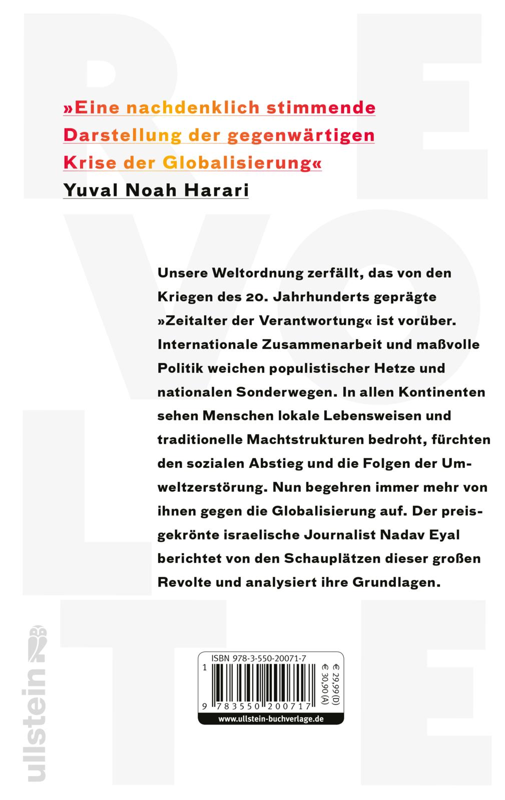 Unsere Weltordnung zerfällt - und der renommierte israelische Journalist Nadav Eyal hat einen Namen dafür: Revolte. Nationalismus, Migration, Klimawandel und politische Verwerfungen - in einer scharfsinnigen Analyse erzählt Eyal die Geschichte des 21. Jahrhunderts. Seit Jahren reist er auf den Spuren dieser Entwicklung durch alle Kontinente. Sein Bestseller ist eine große Erzählung über eine bedrohliche neue Welt im Werden.
