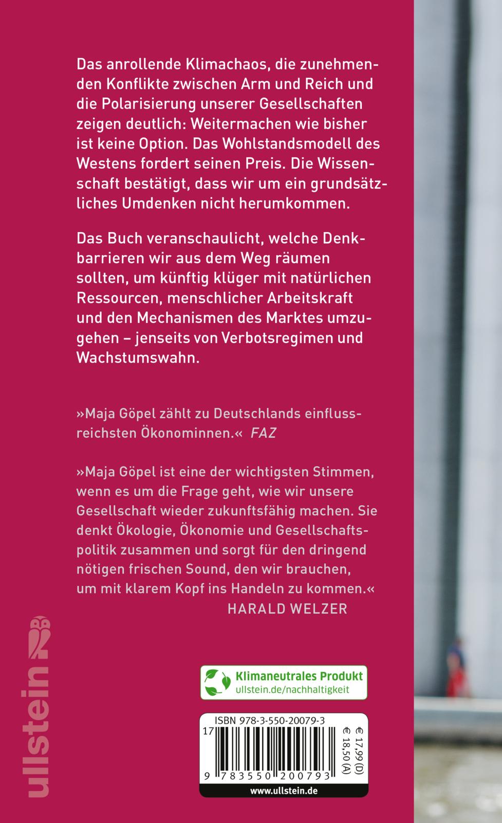 "Maja Göpels Buch ist der gelungene Versuch, Menschheitsgeschichte von der Evolution des Homo sapiens bis zu Greta Thunberg, ökonomische Theorie von Adam Smith bis Thomas Piketty, Umweltforschung und Systemkritik auf knappem Raum in eine kurzweilige Lektüre zu verpacken - und das macht sie gut." Jessica von Blazekovic Frankfurter Allgemeine Zeitung 20200414