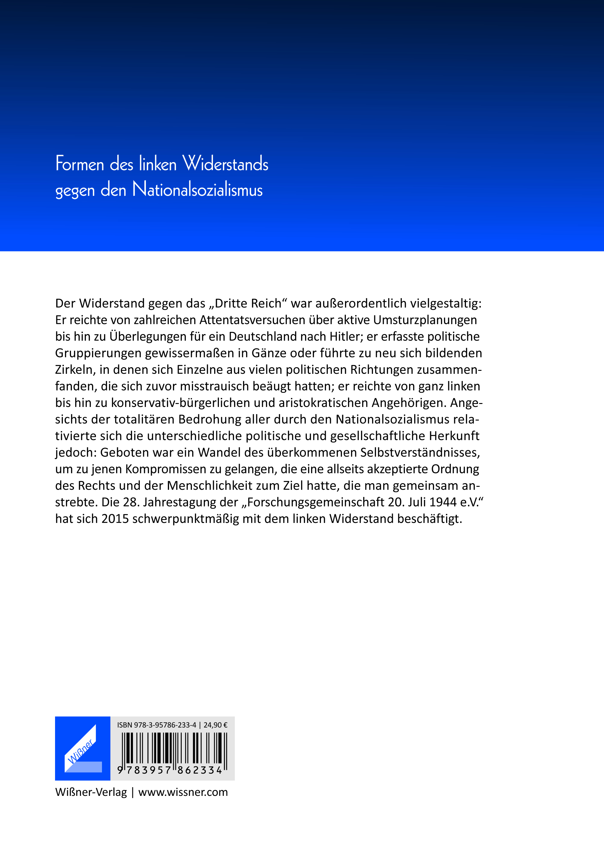 Der Widerstand gegen das "Dritte Reich" war außerordentlich vielgestaltig: Er reichte von zahlreichen Attentatsversuchen über aktive Umsturzplanungen bis hin zu Überlegungen für ein Deutschland nach Hitler; er erfasste politische Gruppierungen gewissermaßen in Gänze oder führte zu neu sich bildenden Zirkeln, in denen sich Einzelne aus vielen politischen Richtungen zusammenfanden, die sich zuvor misstrauisch beäugt hatten; er reichte von ganz linken bis hin zu konservativ-bürgerlichen und aristokratischen Angehörigen. Angesichts der totalitären Bedrohung aller durch den Nationalsozialismus relativierte sich die unterschiedliche politische und gesellschaftliche Herkunft jedoch: Geboten war ein Wandel des überkommenen Selbstverständnisses, um zu jenen Kompromissen zu gelangen, die eine allseits akzeptierte Ordnung des Rechts und der Menschlichkeit zum Ziel hatte, die man gemeinsam anstrebte. Die 28. Jahrestagung der "Forschungsgemeinschaft 20. Juli 1944 e.V." hat sich 2015 schwerpunktmäßig mit dem linken Widerstand beschäftigt.