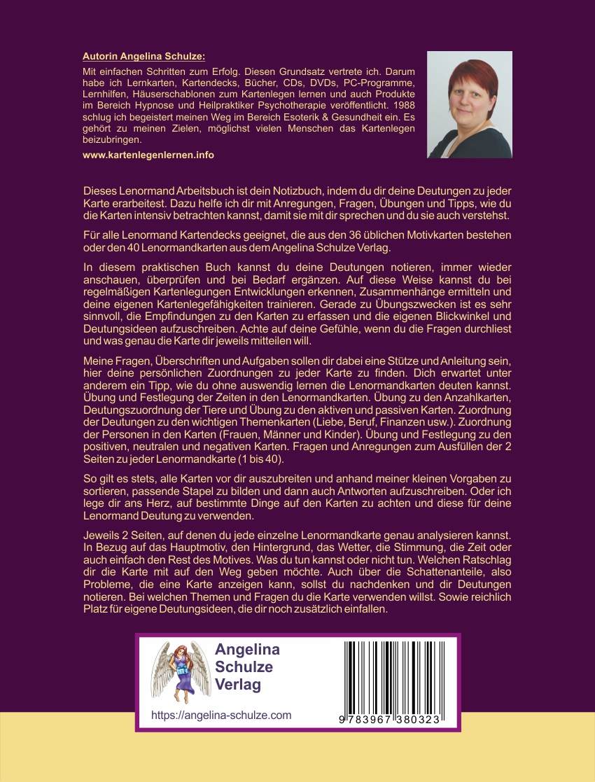 Dieses Lenormand Arbeitsbuch ist dein Notizbuch, indem du dir deine Deutungen zu jeder Karte erarbeitest. Dazu helfe ich dir mit Anregungen, Fragen, Übungen und Tipps, wie du die Karten intensiv betrachten kannst, damit sie mit dir sprechen und du sie auch verstehst.