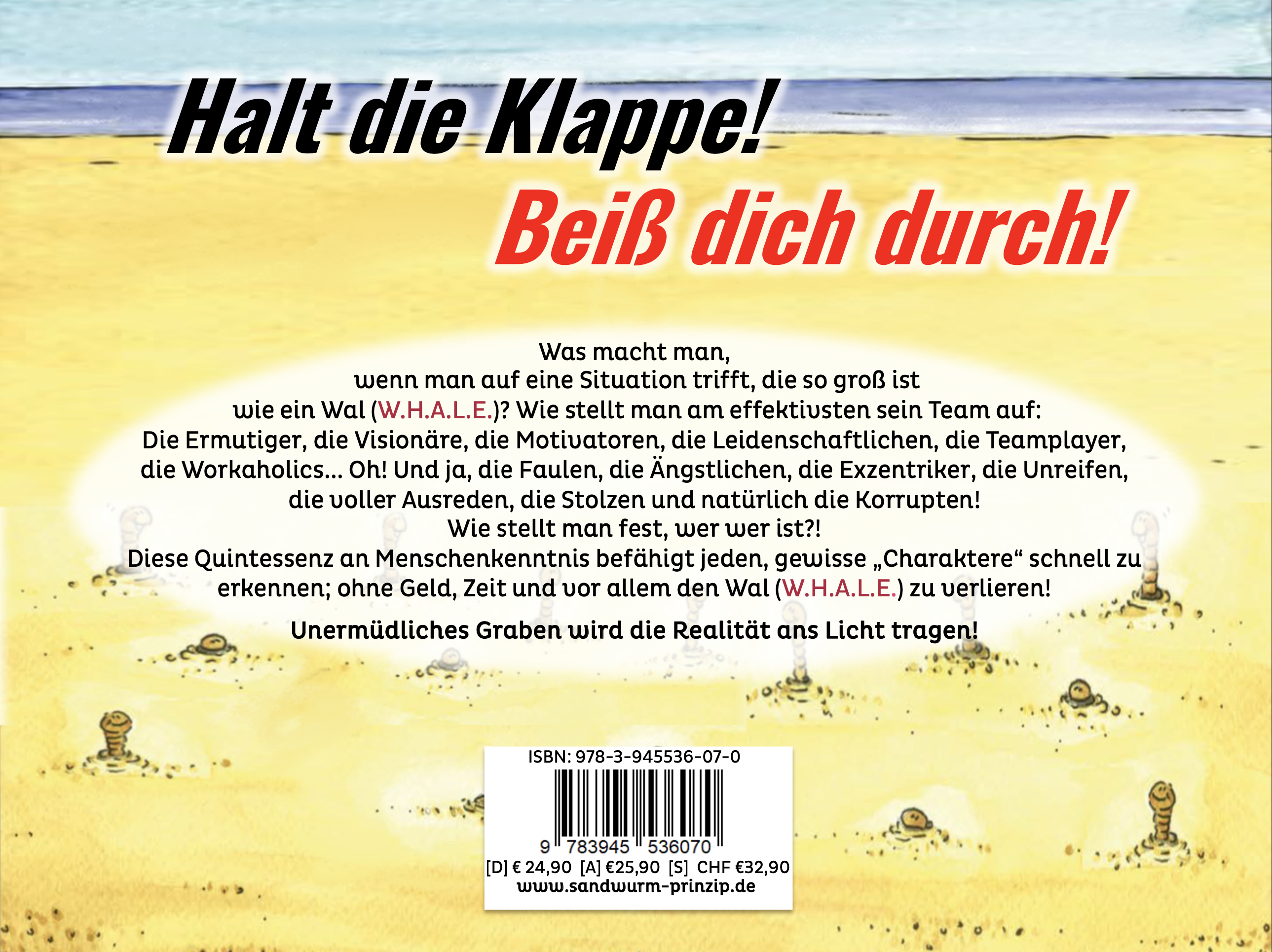 Halt die Klappe! Beiß dich durch!Was macht man, wenn man auf eine Situation trifft, die so groß ist wie ein Wal (W.H.A.L.E.)? Wie stellt man am effektivsten sein Team auf: Die Ermutiger, die Visionäre, die Motivatoren, die Leidenschaftlichen, die Teamplayer, die Workaholics... Oh! Und ja, die Faulen, die Ängstlichen, die Exzentriker, die Unreifen, die voller Ausreden, die Stolzen und natürlich die Korrupten! Wie stellt man fest, wer wer ist?! Diese Quintessenz an Menschenkenntnis befähigt jeden, gewisse "Charaktere" schnell zu erkennen; ohne Geld, Zeit und vor allem, ohne den Wal (W.H.A.L.E.) zu verlieren!.Unermüdliches Graben wird die Realität ans Licht tragen!