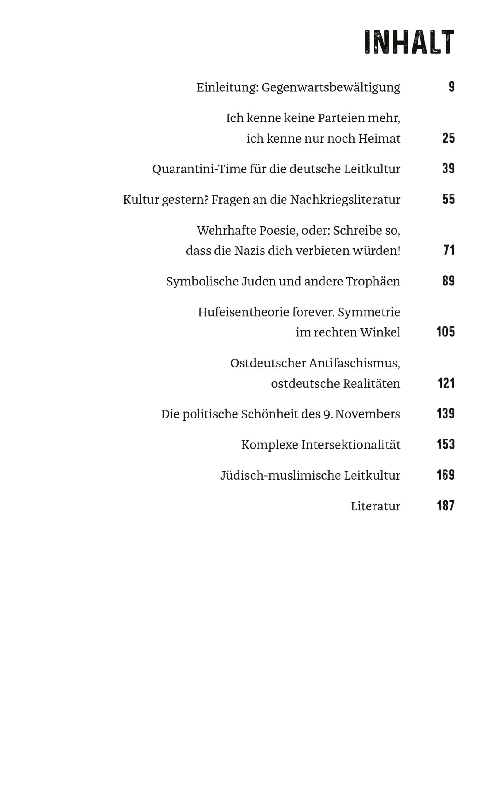 "Eine glänzende Streitschrift. ... Auf erfrischende Weise ergänzt Czollek die Stimmen jener Autorinnen und Autoren, die seit Jahren ihr Missfallen an der zelebrierten deutschen Erinnerungskultur artikulieren." Alexandra Senfft, der Freitag, 15.10.20