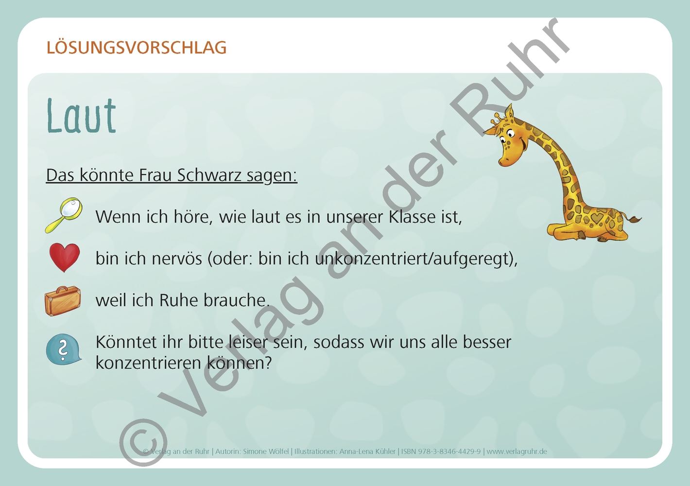 | Schlagworte | Einsatz Kartei zu gewaltfreien Kommunikation • Gewaltfreie Kommunikation • Gewaltfreie Kommunikation für die Schule • gewaltfreie Kommunikation mit Kindern • Gewaltprävention • gfk material • giraffensprache • Giraffen-Sprache • Giraffensprache Grundschule • grundschule soziales lernen • Hintergrundinfos Gewaltfreie Kommunikation • Kartei für den Unterricht Soziales Lernen • konflikte lösen durch gewaltfreie kommunikation • Konzept von Marshall B. Rosenberg • mashall rosenberg • Soziales Lernen in der Schule • streit unter kindern grundschule • übungen gfk • Wertschätzende Kommunikation • Wolfsprache |