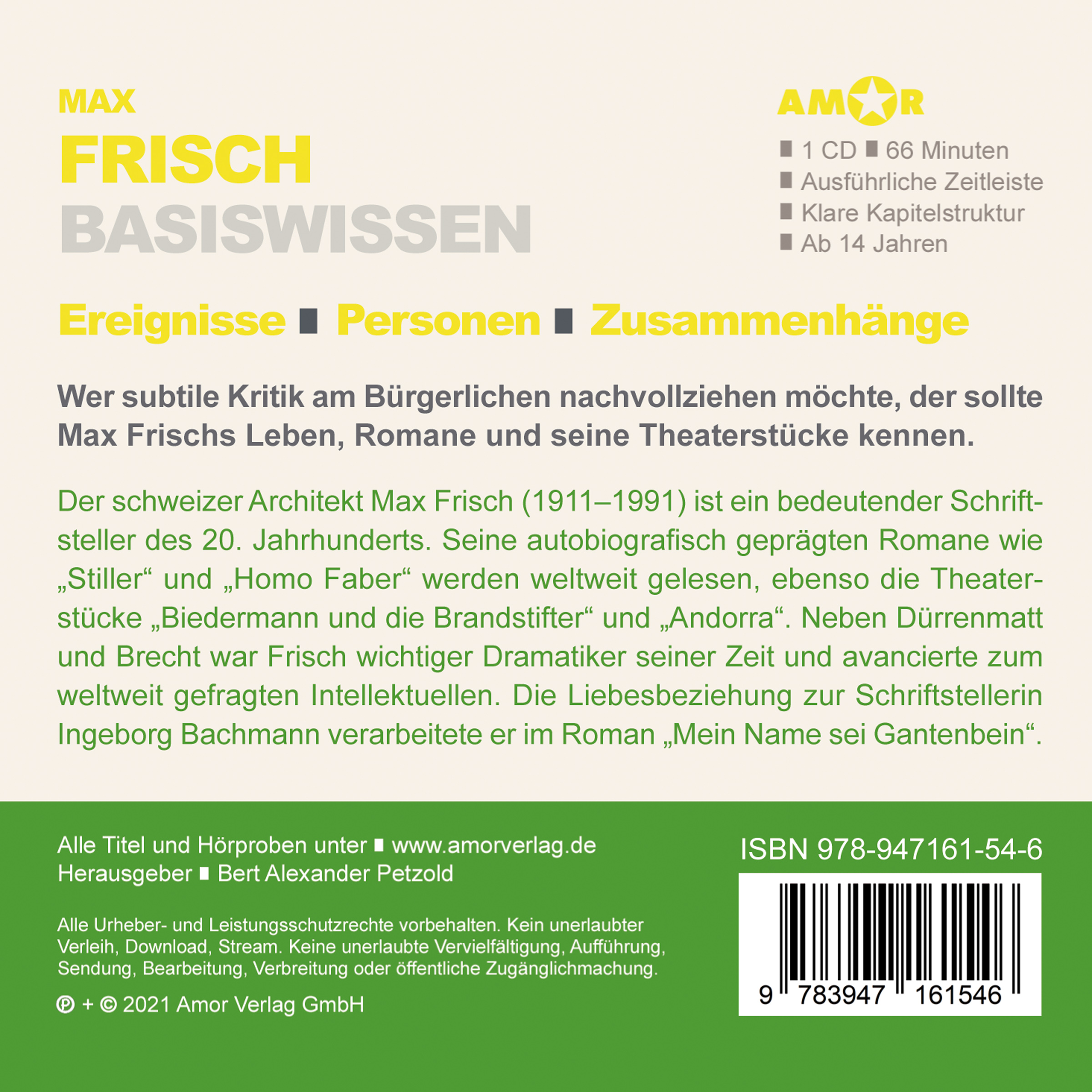 Der erfahrene Autor und Herausgeber Bert Alexander Petzold nimmt uns mit auf eine faktenreiche Kulturreise und erläutert verständlich, unterhaltsam und strukturiert Basiswissen zum weltweit beachteten schweizer Schriftsteller Max Frisch.