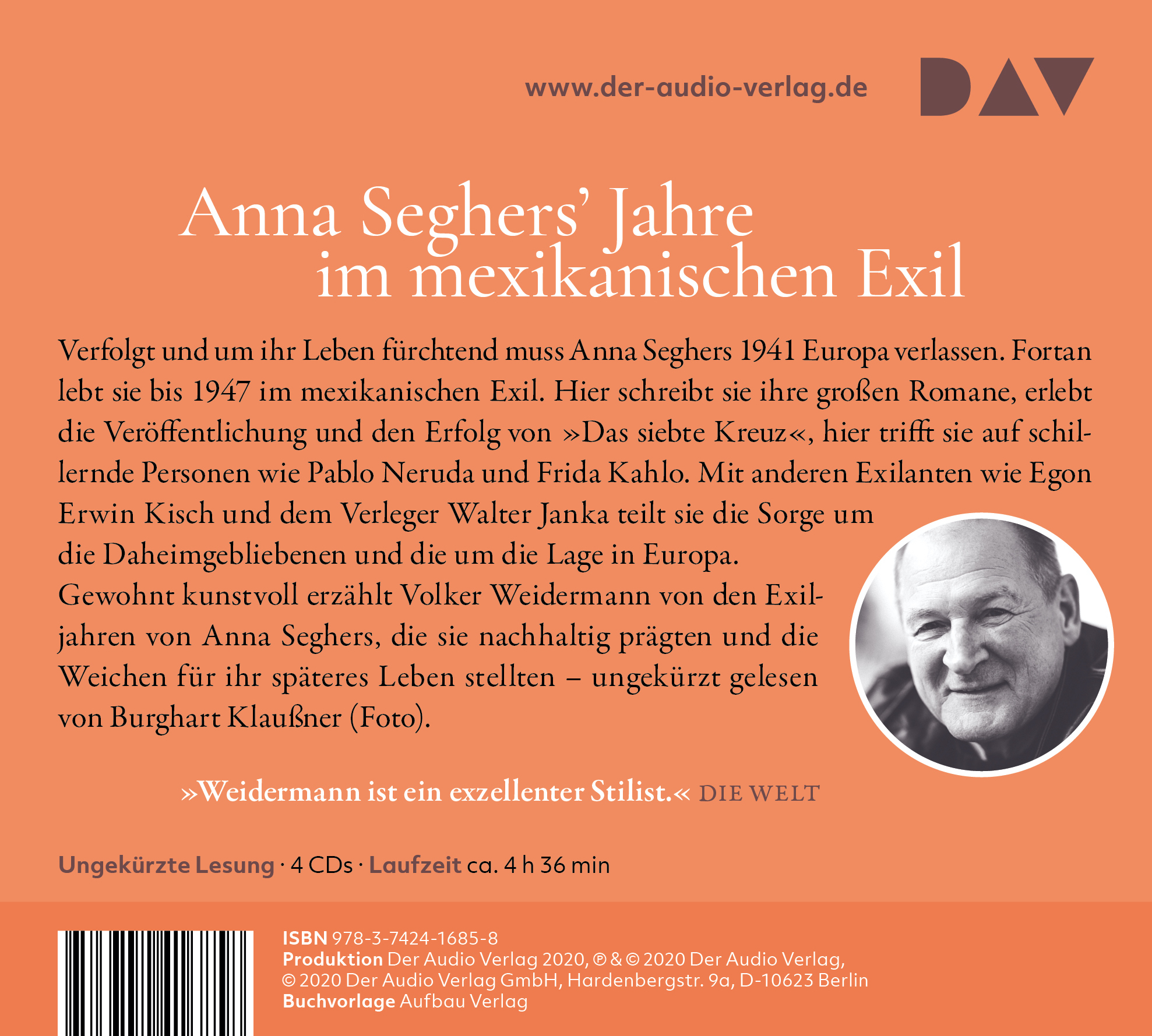 Mit den anderen Exilanten Egon Erwin Kisch und dem Verleger Walter Janka teilt sie die Sorge um die Daheimgebliebenen und die um die Lage in Europa. Gewohnt kunstvoll erzählt Volker Weidermann von Anna Seghers Exiljahren, die die Schriftstellerin nachhaltig prägten und die Weichen für ihr späteres Leben stellten.