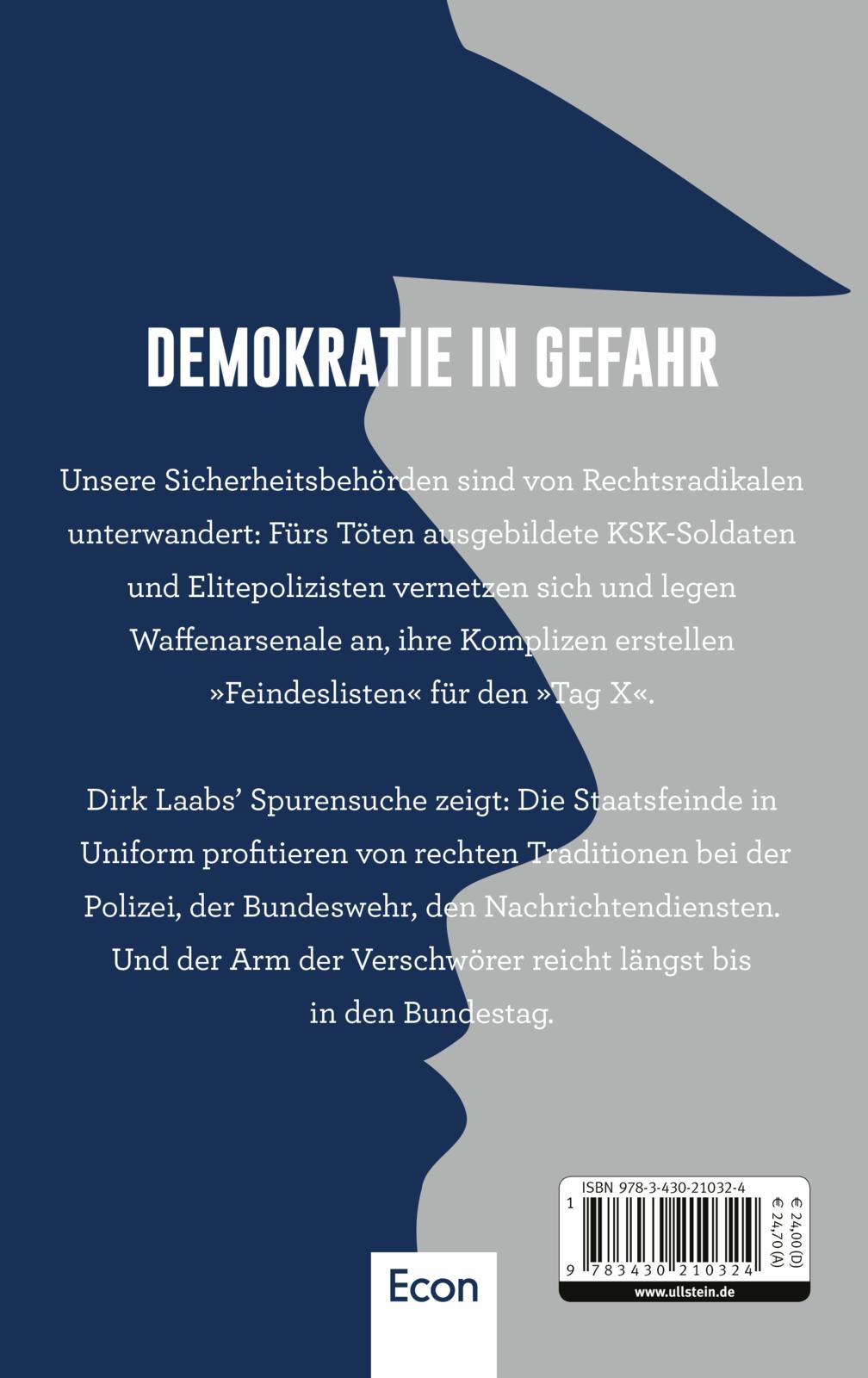 Der Autor Dirk Laabs recherchiert seit fast 20 Jahren zum Thema Terrorismus. Er hat unter anderem das Buch „Heimatschutz“ (mit Stefan Aust) geschrieben, das demnächst von der Constantin verfilmt wird, außerdem hat er die Dokumentation „Der NSU-Komplex“ (u.a. für Netflix) realisiert. Er hat diverse Beiträge über die rechte Szene für Fachpublikationen geschrieben. Laabs wurde zudem von mehreren NSU-Untersuchungsausschüssen als Gutachter geladen. Er hat zahlreiche Preise in Deutschland und im Ausland gewonnen. Darunter den Opus-Primus-Preis für das beste wissenschaftliche Buch eines Nachwuchsautoren („Der deutsche Goldrausch“), sowie den Holtzbrinck-Preis für einen seiner Filme über die Deutsche Bank für das ZDF. Ebenfalls für das ZDF realisiert Laabs zudem aktuell eine Dokumentation über die rechte Bewegung, nachdem er im Sommer 2019 einen Film über „Staatsfeinde in Uniform“ gedreht hatte.