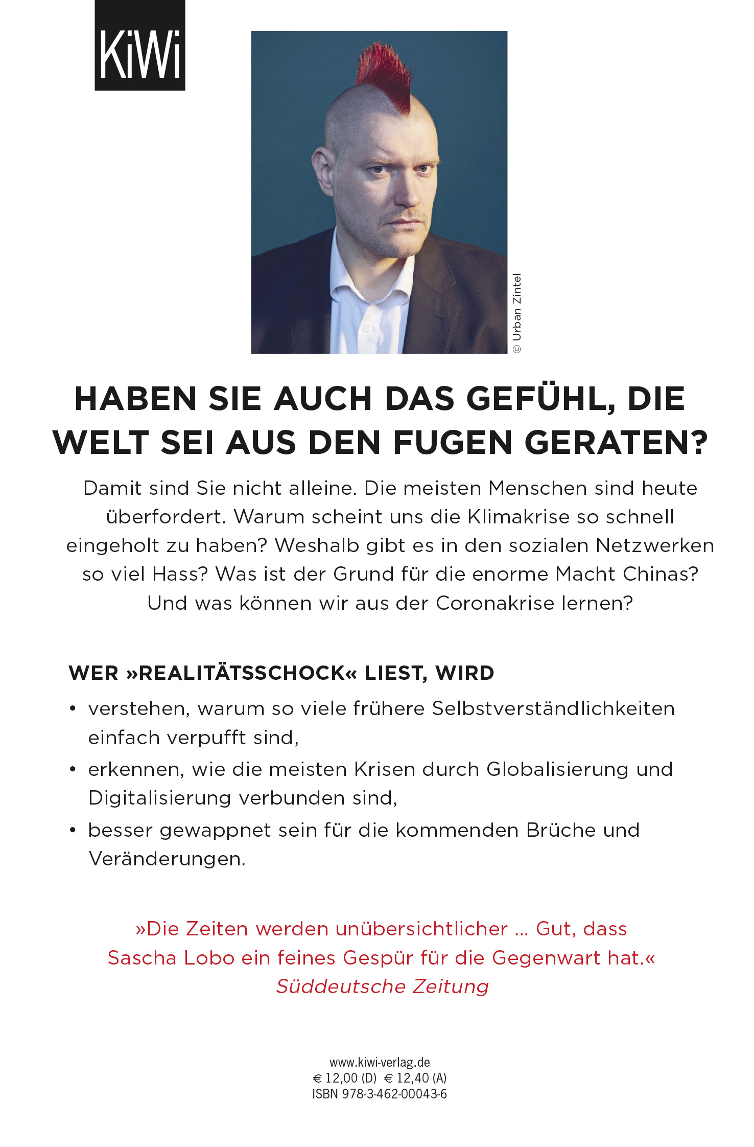 Sascha Lobo, geboren 1975, lebt als Publizist in Berlin und im Internet. Er ist Autor zahlreicher Bücher, Blogger und Podcaster, häufiger Gast in Fernsehsendungen und schreibt eine vielgelesene Kolumne beim SPIEGEL. Zuletzt erschien von ihm der Bestseller »Realitätsschock«.