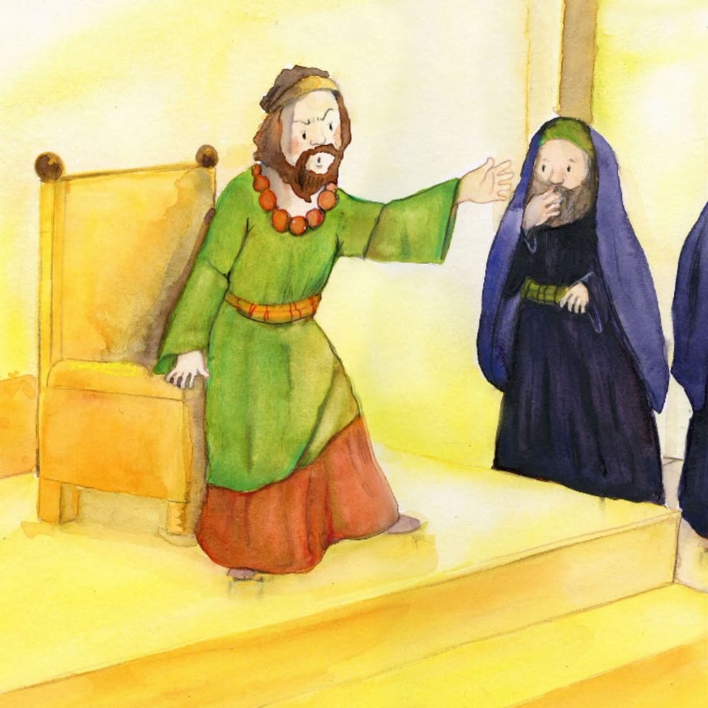 König Herodes ist wütend. Die weisen Sterndeuter, die ihm Nachricht vom neugeborenen König in Betlehem hätten bringen sollen, sind nicht gekommen. Und Herodes fürchtet sich vor der Macht des kleinen Kindes. Da fasst er einen grausamen Plan, um das neugeborene Kind zu beseitigen. Doch Gott schützt Jesus und seine Eltern: Ein Engel erscheint Josef und befiehlt ihm, mit Maria und dem Kind nach Ägypten zu fliehen ... Nach Matthäus 2,13-23