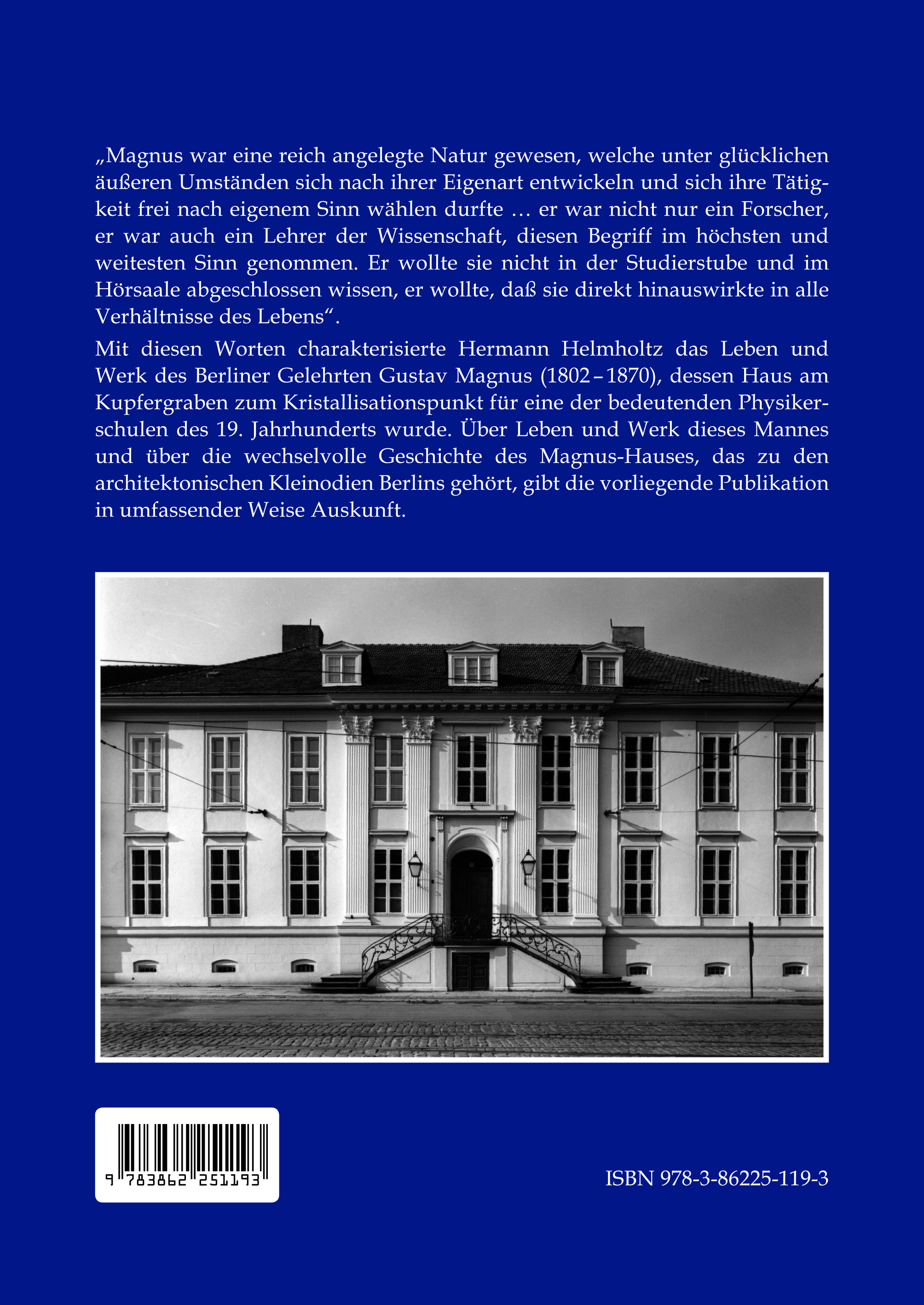 Vorwort zur NeuausgabeNachdem das vorliegende Buch, erschienen im Sommer 1995 anlässlich des 150-jährigen Gründungsjubiläums der Deutschen Physikalischen Gesellschaft und der Wiedereröffnung des von Grund auf sanierten Magnus-Hauses, eine freundliche Aufnahme gefunden hatte und seit einiger Zeit auch vergriffen war, erscheint nun nach 25 Jahren das Buch in einer neuen und erweiterten Ausgabe. Auch diesmal gibt es einen konkreten Anlass, denn das Magnus-Haus wird 2020 durch die Europäische Physikalische Gesellschaft als EPS Historic Site geehrt, d.h. als Ort von besonderer physikhistorischer Bedeutung.Die DPG hat wiederum die Drucklegung mit einem großzügigen Druckkostenzuschuss ermöglicht. Herausgeber und Autoren haben sich bemüht, fachliche Unkorrektheiten und sprachliche Unzulänglichkeiten der Beiträge zu korrigieren bzw. zu verbessern; auch sind die Literaturhinweise aktualisiert worden. Darüber hinaus wurden drei neue Beiträge aufgenommen. Johannes Orphal hat gemeinsam mit dem Herausgeber die Beziehungen zwischen Gustav Magnus und Rudolph Clausius thematisiert, die ein neues Licht auf die Entstehungsgeschichte des zweiten Hauptsatzes der Thermodynamik werfen. Ralf Hahn kommentiert zwei bisher unveröffentlichte Autographen von Magnus und Wolfgang Eberhardt gibt einen kurzen Überblick zu den Aktivitäten des Magnus-Hauses, das mit seinen Vorträgen und Diskussionsveranstaltungen ein breites Publikum anspricht und sich als Ort der Begegnung von Wissenschaft und Öffentlichkeit in Berlin etabliert hat.Last but not least gilt der Dank des Herausgebers dem GNT-Verlag für die engagierte und sachkundige Zusammenarbeit bei der Drucklegung des Manuskripts.Berlin, im April 2020Dieter Hoffmann