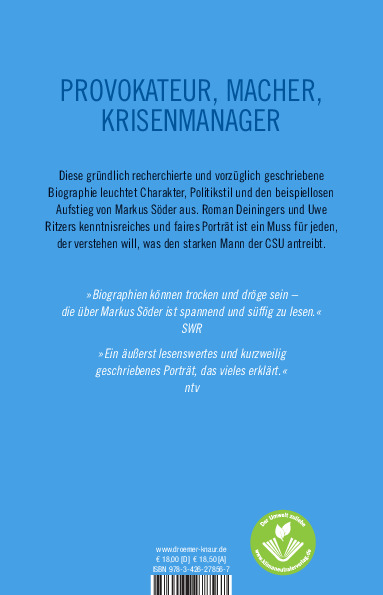 Uwe Ritzer, Jahrgang 1965, hat sich vor allem mit vielen investigativen Recherchen einen Namen gemacht. Dazu gehörten krumme Geschäfte in der Energiewirtschaft ebenso wie der Fall Gustl Mollath oder die Enthüllung des ADAC-Manipulationsskandals. Für seine Arbeit wurde er mehrfach ausgezeichnet, unter anderem dem Wächterpreis, dem Nannenpreis und dem Helmut-Schmidt-Journalistenpreis. Als gebürtiger Franke und Wirtschaftskorrespondent der SZ mit Sitz in Nürnberg erlebte er den Aufstieg Söders über viele Jahre hautnah mit.