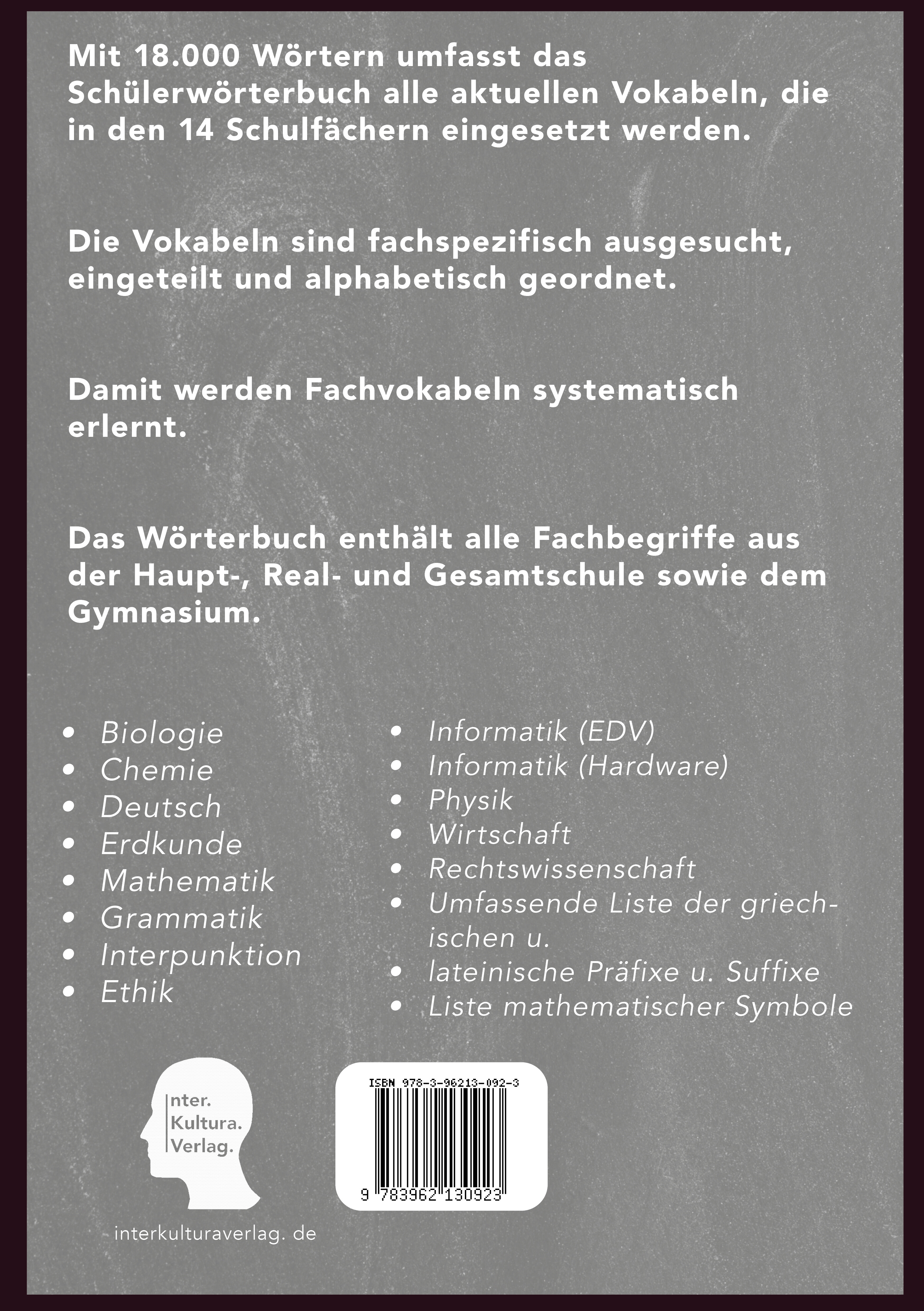 Mit 12000 Wörtern umfasst das Schulfächerwörterbuch alle aktuellen Vokabeln, die in den 24 Schulfächern eingesetzt werden. Das Wörterbuch kombiniert und umfasst die wichtigsten Vokabeln des Schullebens.Die Vokabeln sind fachspezifisch ausgesucht, eingeteilt und alphabetisch geordnet. Damit wird das Lernen von Fachvokabeln systematisch und fachspezifisch unterstützt.Es enthält alle Fachbegriffe aus der Haupt-, Real- und Gesamtschule sowie aus dem Gymnasium.- 3.500 Begriffe, 500 Redewendungen für 15 Schulfächer bis zur zehnten Klasse- Basierend und abgestimmt auf die Lehrpläne aller Bundesländer- Für alle Schulformen, Integrationskurse und das Selbststudium