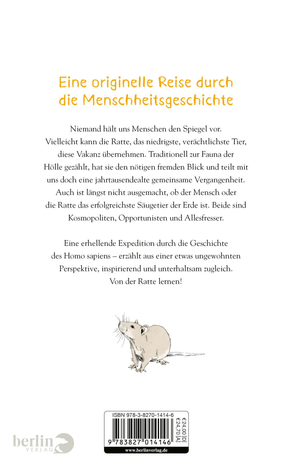 | Schlagworte | Allesfresser • Begleitratte • Europäische Kulturgeschichte • Geschichte der Menschen • Geschichte des Menschen • Kosmopoliten • Kulturgeschichte • Laborratte • Landratten • Leseratte • Menschheitsgeschichte • opportunisten • Pandemie • Pest • Ratten • Rattenversuch • rattus rattus • Sintflut • Wanderratten • Wasserratten |