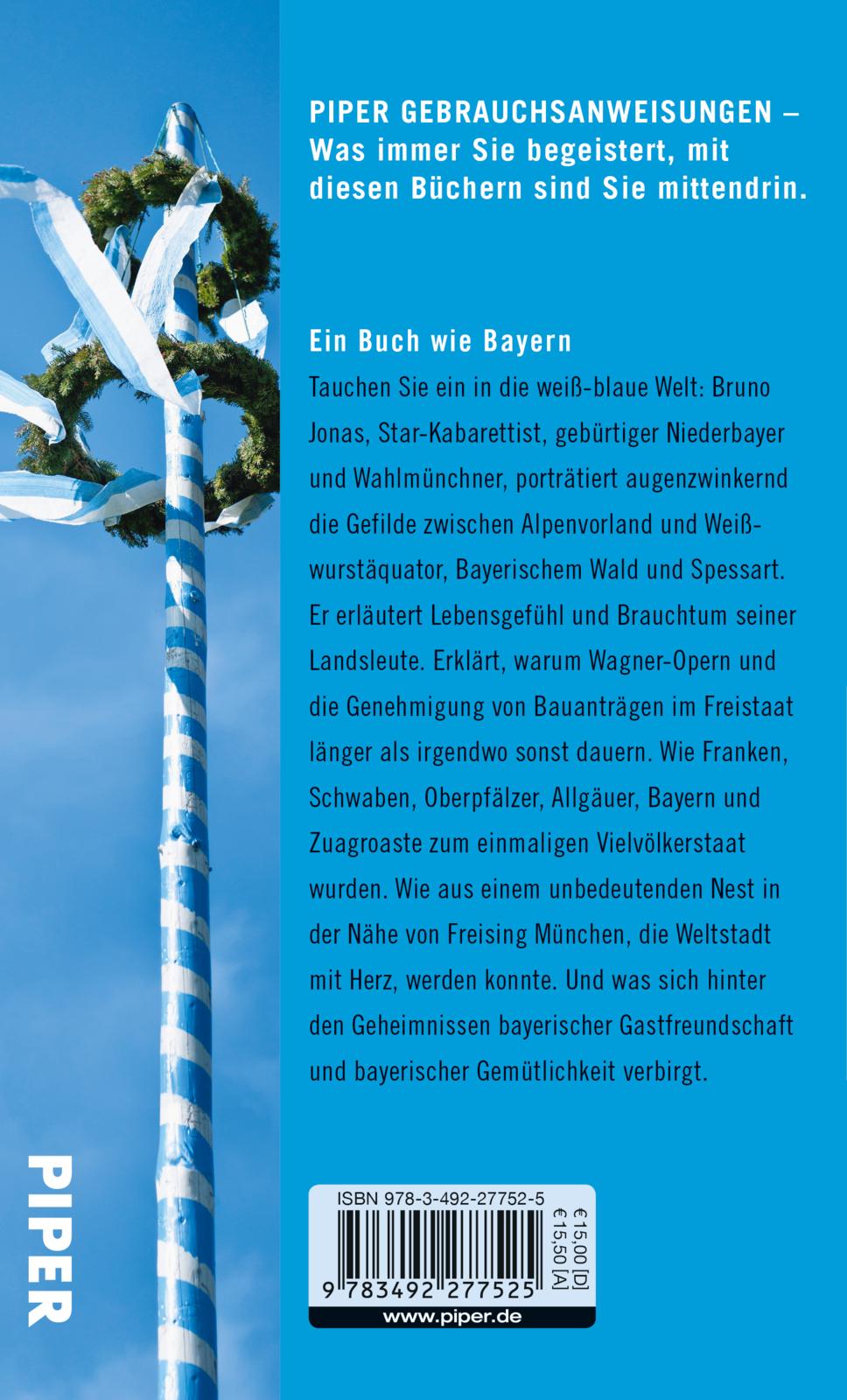 Tauchen Sie ein in die weiß-blaue Welt: Bruno Jonas, gebürtiger Niederbayer und Wahlmünchner, porträtiert augenzwinkernd das Land der grünen Buckelwiesen und prächtigen Barockklöster, der Biergärten und knusprigen Brezen. Er erläutert Lebensgefühl und Brauchtum der Bayern - und wieso der »Striezi« und der »Bazi« wichtige Wesenszüge verkörpern. Warum Wagner-Opern und Bauanträge im Freistaat länger als anderswo dauern. Wie Franken, Schwaben, Oberpfälzer, Allgäuer, Bayern und Zugereiste zum einmaligen Vielvölkerstaat wurden. Und was sich hinter dem Geheimnis bayerischer Gastfreundschaft verbirgt.