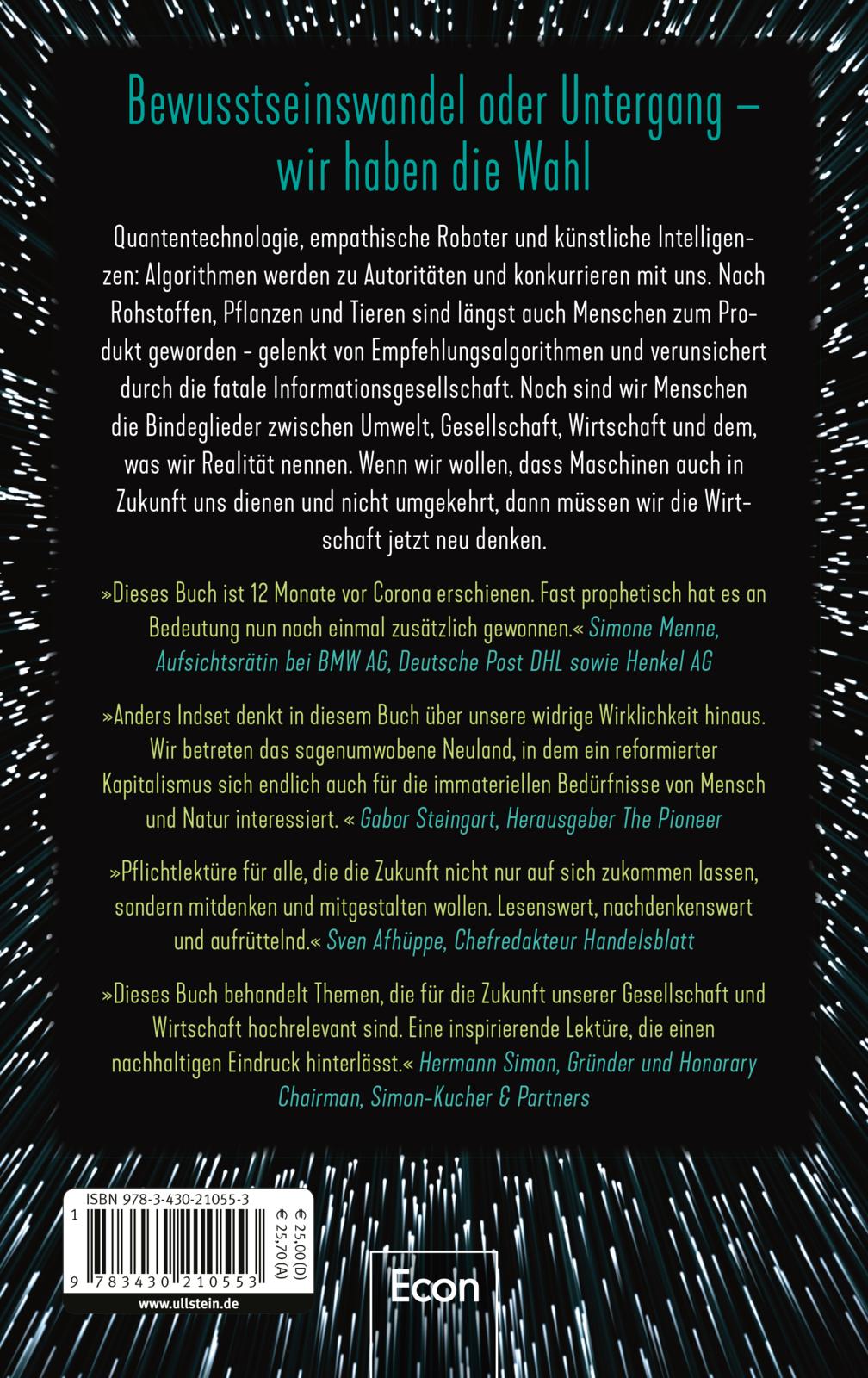 Die rasante Entwicklung von künstlicher Intelligenz, die ersten Quantencomputer und die Automatisierung von immer weiteren Lebens- und Arbeitsbereichen wird massive Auswirkungen auf unsere Zukunft und unser Wirtschaftsmodell haben. Algorithmen werden zu Autoritäten und diese werden unvermeidlich im Wettbewerb gegeneinander antreten. Aber Technologie allein kann und wird nicht die Antwort auf alle unsere Herausforderungen sein. Noch sind wir Menschen die Treiber und Bindeglieder, die unsere Umwelt, Gesellschaft, Wirtschaft und Realität steuern können.