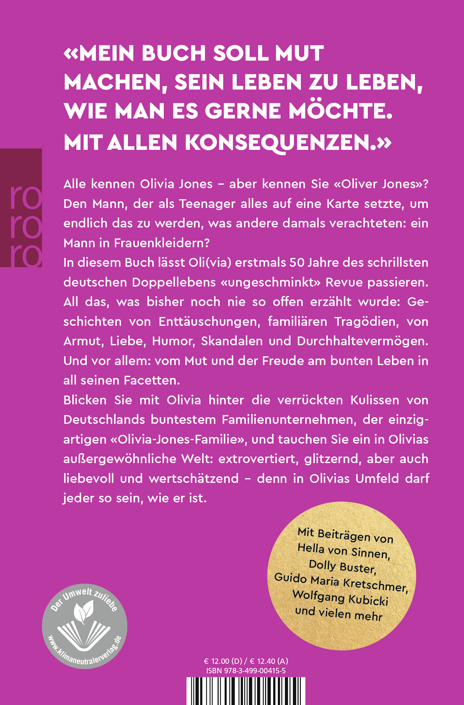 In diesem Buch lässt Oli(via) erstmals 50 Jahre des schrillsten deutschen Doppellebens «ungeschminkt» Revue passieren. All das, was bisher noch nie so offen erzählt wurde: Geschichten von Enttäuschungen, familiären Tragödien, von Armut, Liebe, Humor, Skandalen und Durchhaltevermögen. Und vor allem: vom Mut und der Freude am bunten Leben in all seinen Facetten.