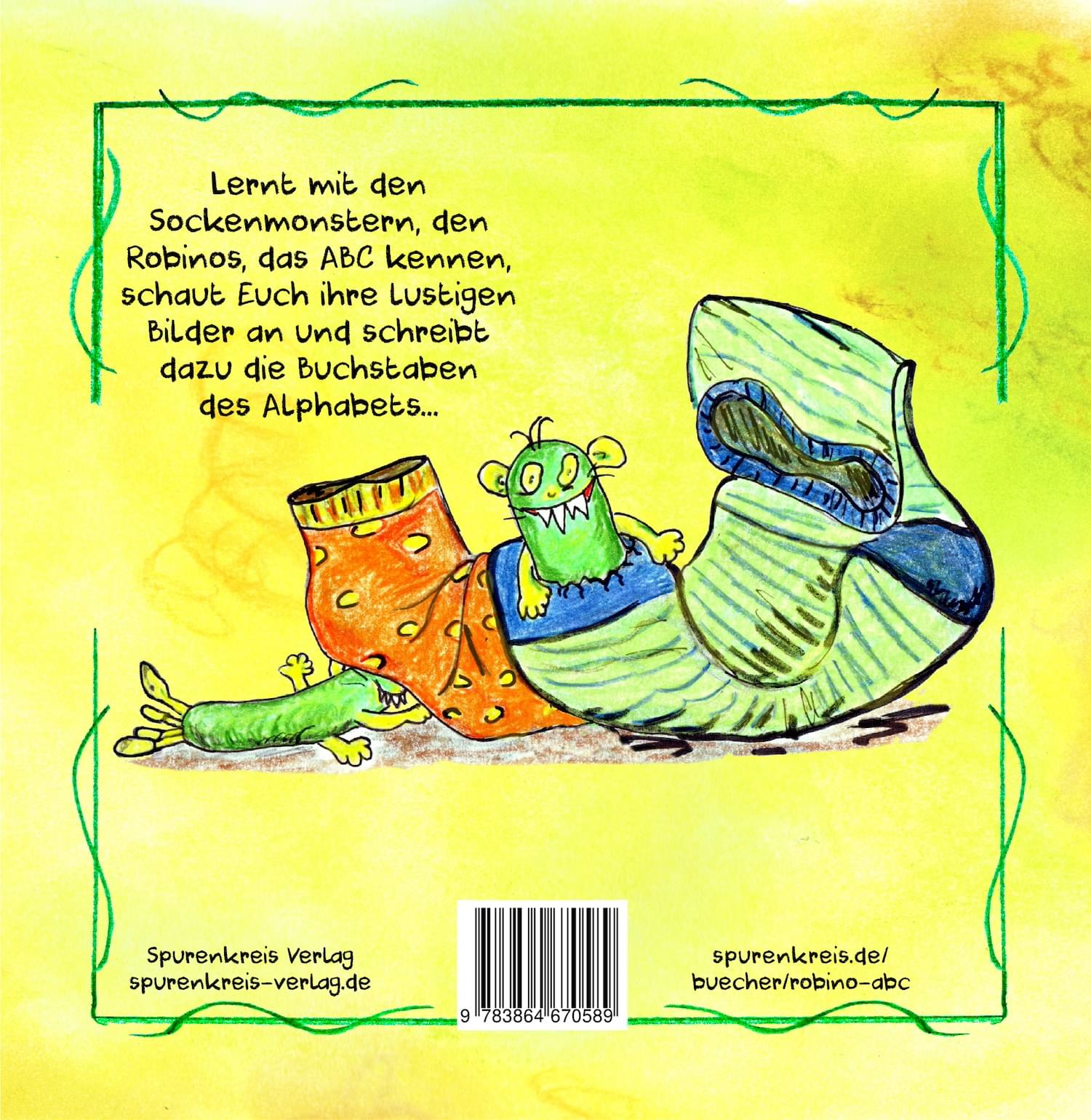 Lernt mit den Sockenmonstern, den Robinos, das ABC kennen, schaut Euch ihre lustigen Bilder an und schreibt dazu die Buchstaben des Alphabets. Ein Bilder-, Lern- & Ausmalbuch für Kinder, illustriert von Manuela Rehahn.