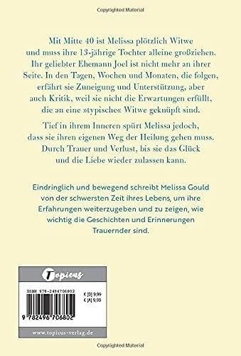Mit Mitte 40 ist Melissa plötzlich Witwe und muss ihre 13-jährige Tochter alleine großziehen. Ihr geliebter Ehemann Joel ist nicht mehr an ihrer Seite. In den Tagen, Wochen und Monaten, die folgen, erfährt sie Zuneigung und Unterstützung, aber auch Kritik, weil sie nicht die Erwartungen erfüllt, die an eine »typische« Witwe geknüpft sind.