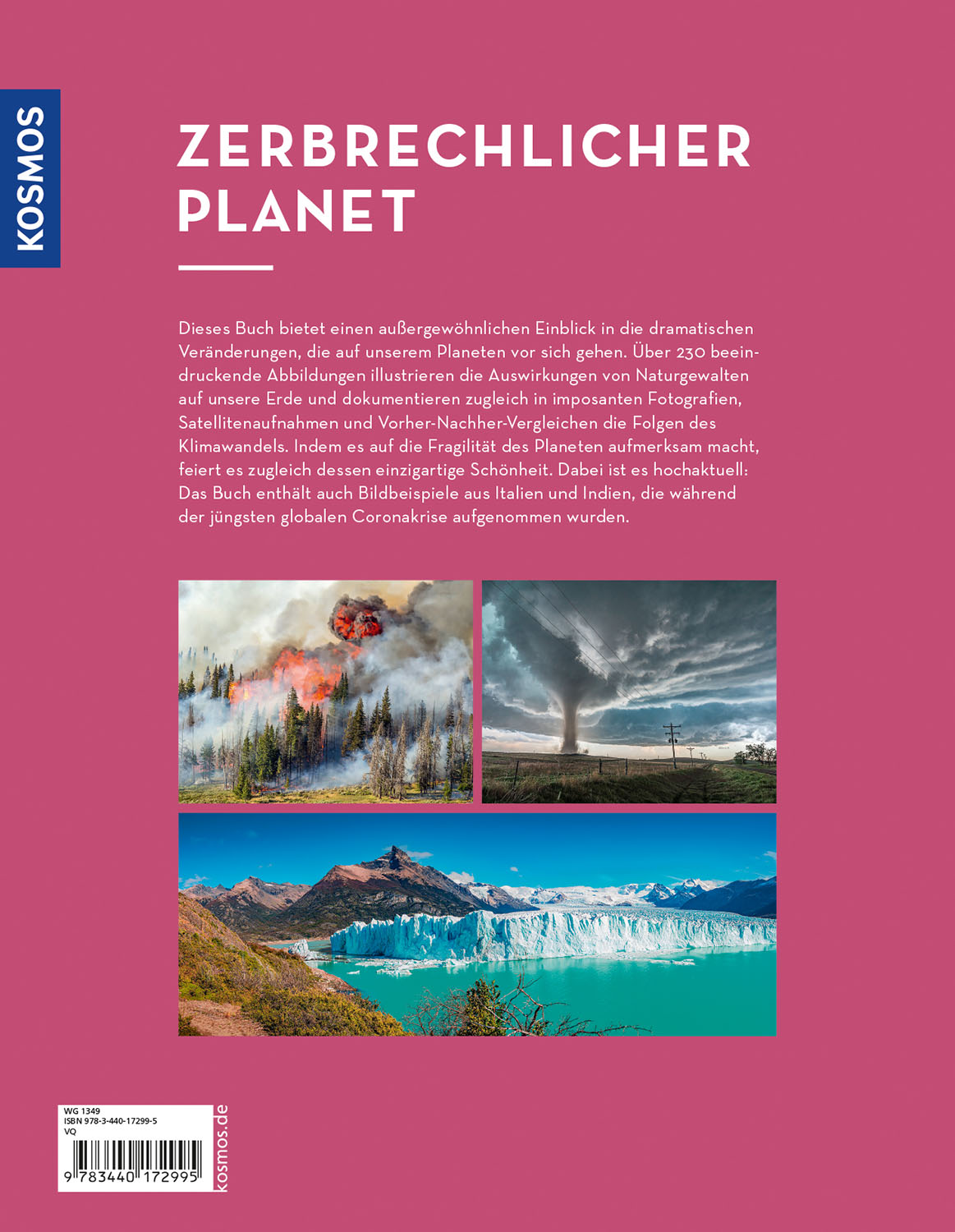 Unkontrollierbare Waldbrände, verheerende Stürme, schwindende Gletscher und tödliche Dürren - dieses Buch dokumentiert die dramatischen Veränderungen, die auf unserem Planeten vor sich gehen, in ihrem erschreckenden Ausmaß. Über 230 imposante Fotografien, Vorher-Nachher-Vergleiche und Satellitenaufnahmen illustrieren die Auswirkungen von Naturgewalten und führen die Folgen des Klimawandels anhand aktueller Beispiele eindrucksvoll vor Augen. Vorher-Nachher-Beispiele aus Italien und Indien zeigen, wie sich die Umwelt im Corona-Lockdown 2020 teilweise erholen konnte. Ein aufrüttelndes Buch und ein starker Beitrag zur Nachhaltigkeits-Debatte.Indem es auf die Fragilität des Planeten aufmerksam macht, feiert es zugleich dessen einzigartige Schönheit.Mit einem Vorwort von Fritz Habekuß, Autor und Wissenschaftsjournalist (u.a. für die "DIE ZEIT").Aus dem Englischen übersetzt von Dagmar Brenneisen