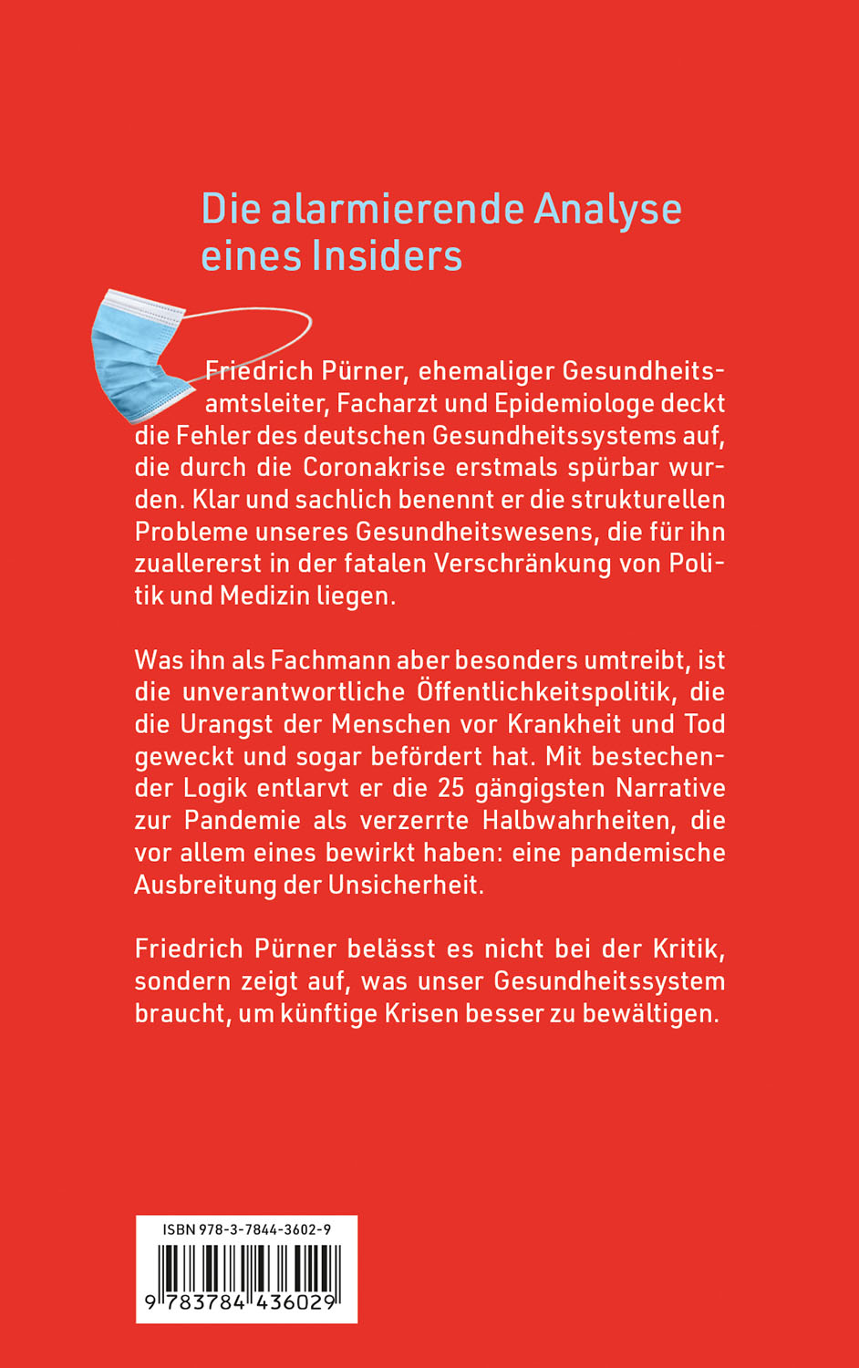 Dr. med. Friedrich Pürner weiß, wovon er spricht. Als Gesundheitsamtsleiter hat er die ersten beiden Corona-Wellen an einem Brennpunkt des Geschehens erlebt. Sein Fazit: Dass Corona zu einer Krise solchen Ausmaßes wurde, liegt nicht in erster Linie an der Gefährlichkeit des Virus, sondern an den Fehlern in unserem Gesundheitssystem. Die Verschränkung von Politik und Medizin hat teilweise fatale Folgen, die lange unbemerkt blieben. Corona wirkt wie ein Brennglas, denn wir bekommen diese Auswirkungen in der Krise erstmals wirklich zu spüren. Selbst wenn wir die aktuelle Pandemie in den Griff bekommen, wird die nächste das öffentliche Gesundheitswesen vielleicht noch deutlicher an seine Grenzen führen. Sind wir dafür gewappnet? Nein, sagt der Amtsarzt. Wir müssen die strukturellen Probleme endlich angehen, Missstände beseitigen und Qualitätsstandards setzen, um künftigen Herausforderungen begegnen zu können.