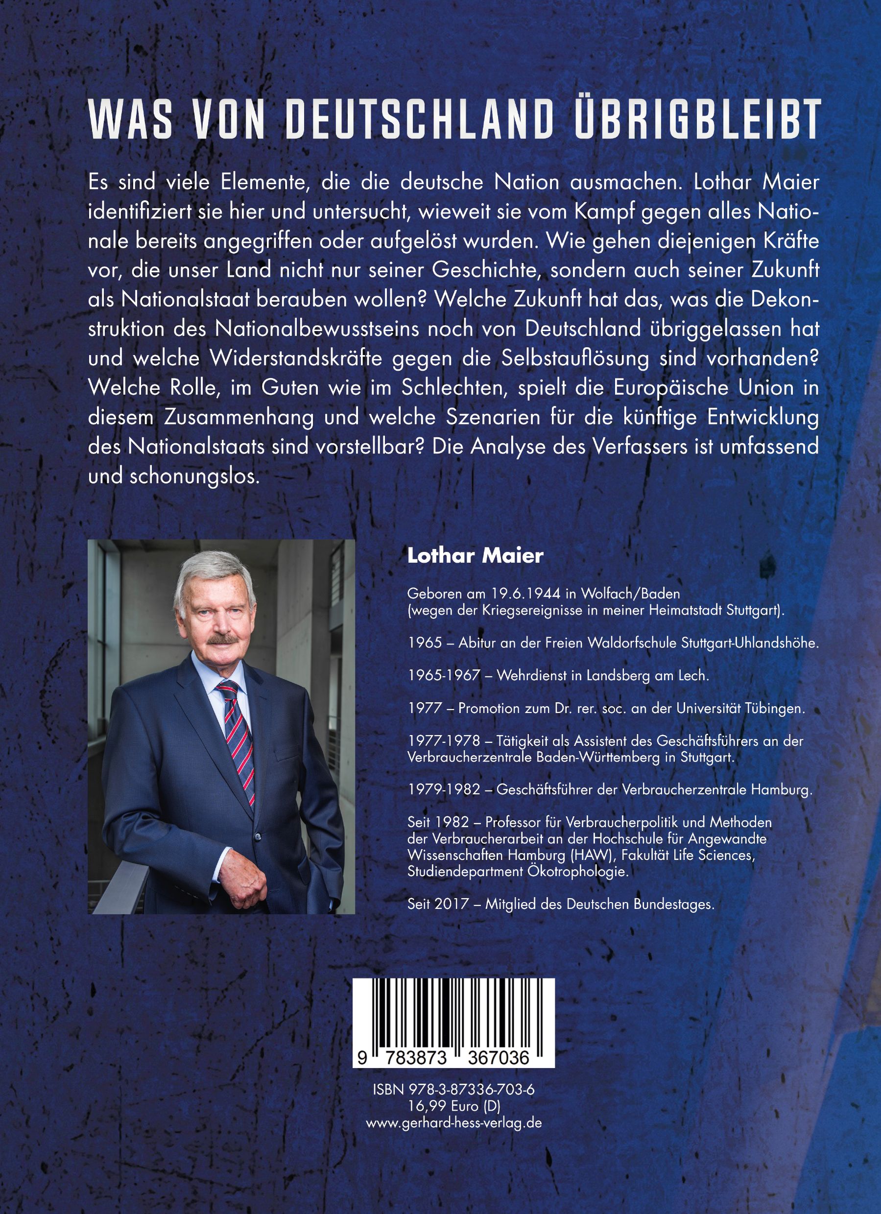Es sind viele Elemente, die die deutsche Nation ausmachen. Lothar Maier (Mitglied des Deutschen Bundestages seit 2017) identifiziert sie hier und untersucht, wieweit sie vom Kampf gegen alles Nationale bereits angegriffen oder aufgelöst wurden. Wie gehen diejenigen Kräfte vor, die unser Land nicht nur seiner Geschichte, sondern auch seiner Zukunft als Nationalstaat berauben wollen? Welche Zukunft hat das, was die Dekonstruktion des Nationalbewusstseins noch von Deutschland übriggelassen hat und welche Widerstandskräfte gegen die Selbstauflösung sind vorhanden? Welche Rolle, im Guten wie im Schlechten, spielt die Europäische Union in diesem Zusammenhang und welche Szenarien für die künftige Entwicklung des Nationalstaats sind vorstellbar? Die Analyse des Verfassers ist umfassend und schonungslos.