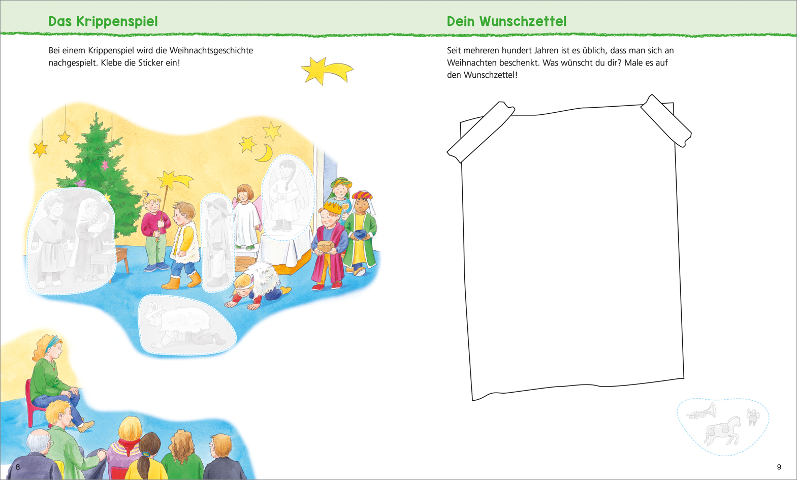 | Schlagworte | Advent • Ausmalbilder • Ausmalen • Begreifen • Kindergarten • Malen • Mitmachheft • Rätselheft • Rätseln • Spiele • Stickerbogen • Weihnachten • Weihnachtsbaum • Weihnachtsfest |