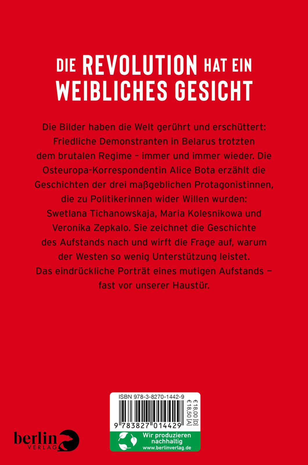 Die Bilder haben die Welt gerührt und erschüttert: Friedliche Demonstranten in Belarus trotzten dem brutalen Regime - immer und immer wieder. Die Osteuropa-Korrespondentin Alice Bota erzählt die Geschichten der drei maßgeblichen Protagonistinnen, die zu Politikerinnen wider Willen wurden: Swetlana Tichanowskaja, Maria Kolesnikowa und Veronika Zepkalo.
