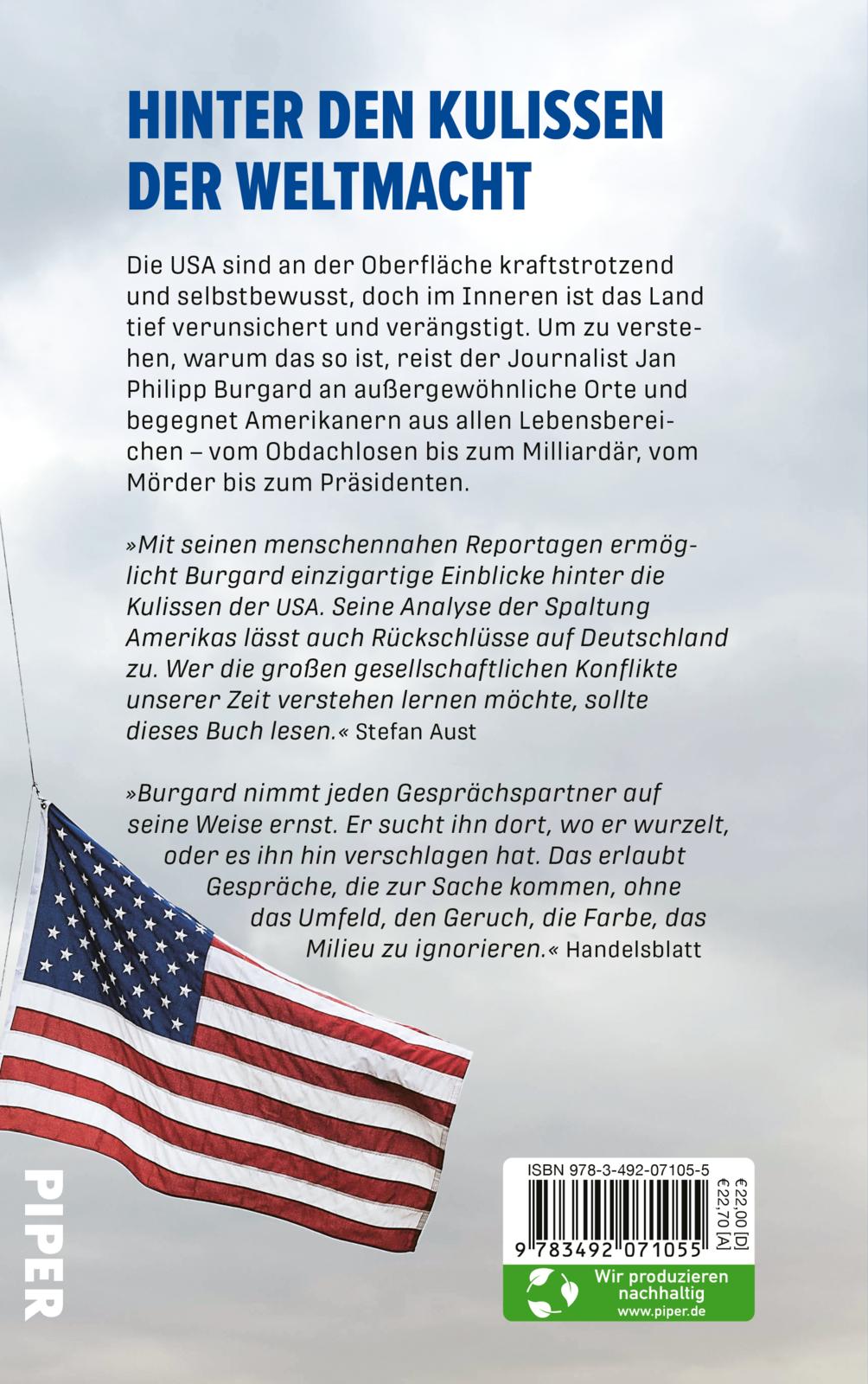 »Burgard wagt sich in den tiefsten Rassismus-Konflikt, zu Waffennarren und evangelikalen Geheimbünden, in Gefängnisse und ins Silicon Valley. Er beschreibt ein Drama als Alltag, spannend und hintergründig wie Kurzgeschichten. Ihm gelingt im Reigen der Reporterbeobachten eine brillante psychologische Tiefenanalyse der USA.«
