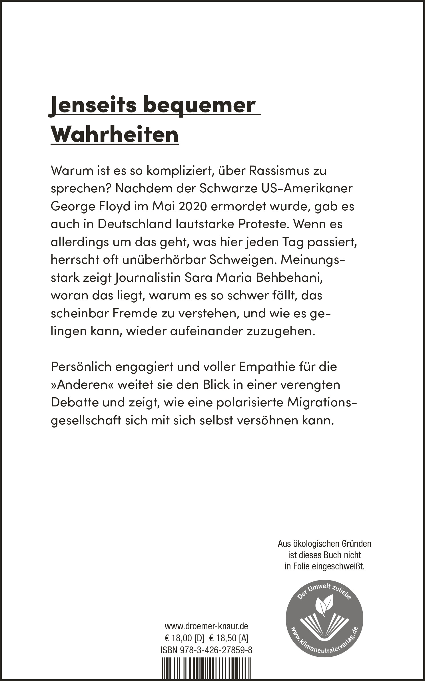 | Schlagworte | Alltagsrassismus • Ausgrenzung • Befreiung • #blacklivesmatter • Corona • cultural appropriation • Debatte • Debattenbuch • Deutschland • Deutschland Politik Kultur Gesellschaft • Diskriminierung • diskriminierung buch • Diversität • Diversity • Einwanderung • Flüchtling • Fremde • Fremdenfeindlichkeit • Fremdenhass • Geflüchtete • George Floyd • Gerechtigkeit • Gesellschaft • Gesellschaftskritik • Gesellschaftskritische Bücher • Hautfarbe • Heimat • Herkunft • Identität • Identitätspolitik • Integration • Integration Buch • integration flüchtlinge • Integration Geflüchtete • Integration Migranten • Iran • Klischees • Kolonialismus • Macht • #MeTwo • Migration • Migrationshintergrund • Multikulti • People of Color • persönlich • Plädoyer • Politik • Politik und Gesellschaft • politisches Buch • Privileg • Rassismus • Rassismus Buch • rassismus deutschland • rassismuskritisch • Rassismus und Antirassismus • rassistisch • Sachbuch Gesellschaft • sachbuch politik • Schwarze • Sichtbarkeit • Solidarität • Weiße • white privilege • Zusammenhalt • Zusammenleben |