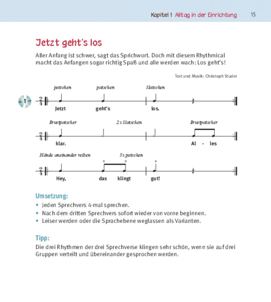 Gemeinsam in der Gruppe auf den Boden stampfen, in die Hände klatschen und dabei den Text im Takt mitsprechen: Die Rhythmicals machen nicht nur Spaß und klingen fast wie Rap, sie fördern auch ein lebendiges und positives Gruppengefühl. Sie sind aber auch perfekt als überraschende Show-Einlage beim Kita-Fest geeignet - und die Eltern dürfen gleich mitmachen! Witzige Texte und dazu passende Bewegungen - mit Rhythmus zu mehr Sprachgefühl und Koordination!