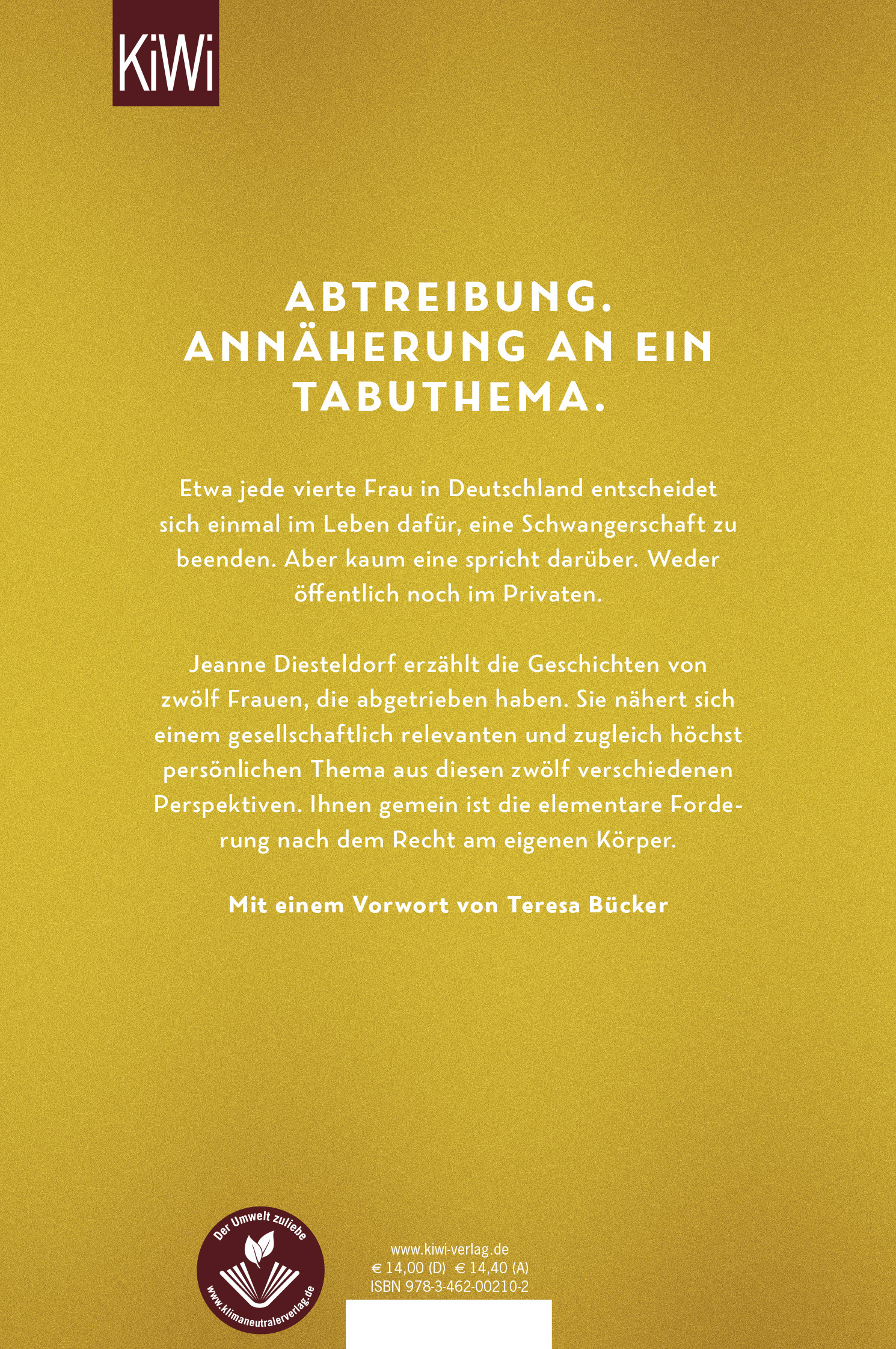 »Zwölf Frauen kommen in Jeanne Diesteldorfs Buch zu Wort, die wie Nadja abgetrieben haben. Weil ein Kind nicht in ihr Leben passt, weil sie selbst noch nicht erwachsen waren oder weil sie unter Druck gesetzt wurden. Das Buch macht klar: Keine Frau, keine Geschichte und keine Entscheidung ist wie die andere.« Katharina Mild Radio Bremen 20220114