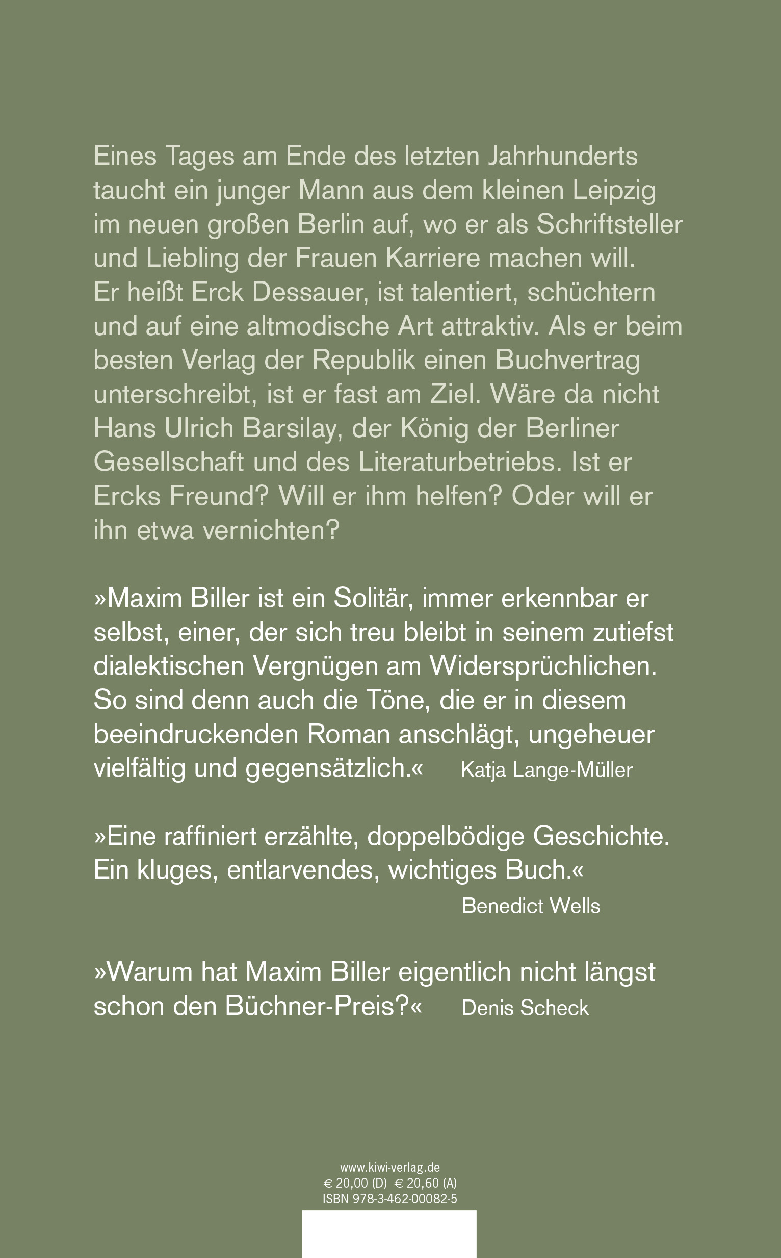 Erck Dessauer, der Held und Erzähler dieses Romans, ist jung, begabt und bereit, ein großer Schriftsteller zu werden. Leicht ist das nicht im Berlin der Nullerjahre, denn eingeschworene Cliquen teilen die Macht unter sich auf, und Missgunst ist ein anderes Wort für Glück.
