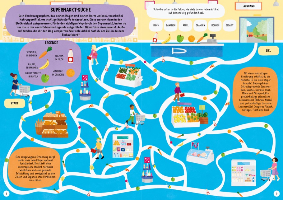 Spielerisch die menschliche Anatomie kennenlernen! In kniffligen Aufgaben und lustigen Spielen erfahren Grundschulkinder, wie unser Körper funktioniert. Zahlreiche Rätselspiele für Kinder ab 7 Jahren bieten viele Stunden lang Beschäftigung und fördern die Konzentration. Labyrinthe, Memory, Zahlenrätsel & Co. - hier können wissbegierige Kinder spannende Aufgaben lösen und nebenher ganz viel Wissenswertes erfahren!