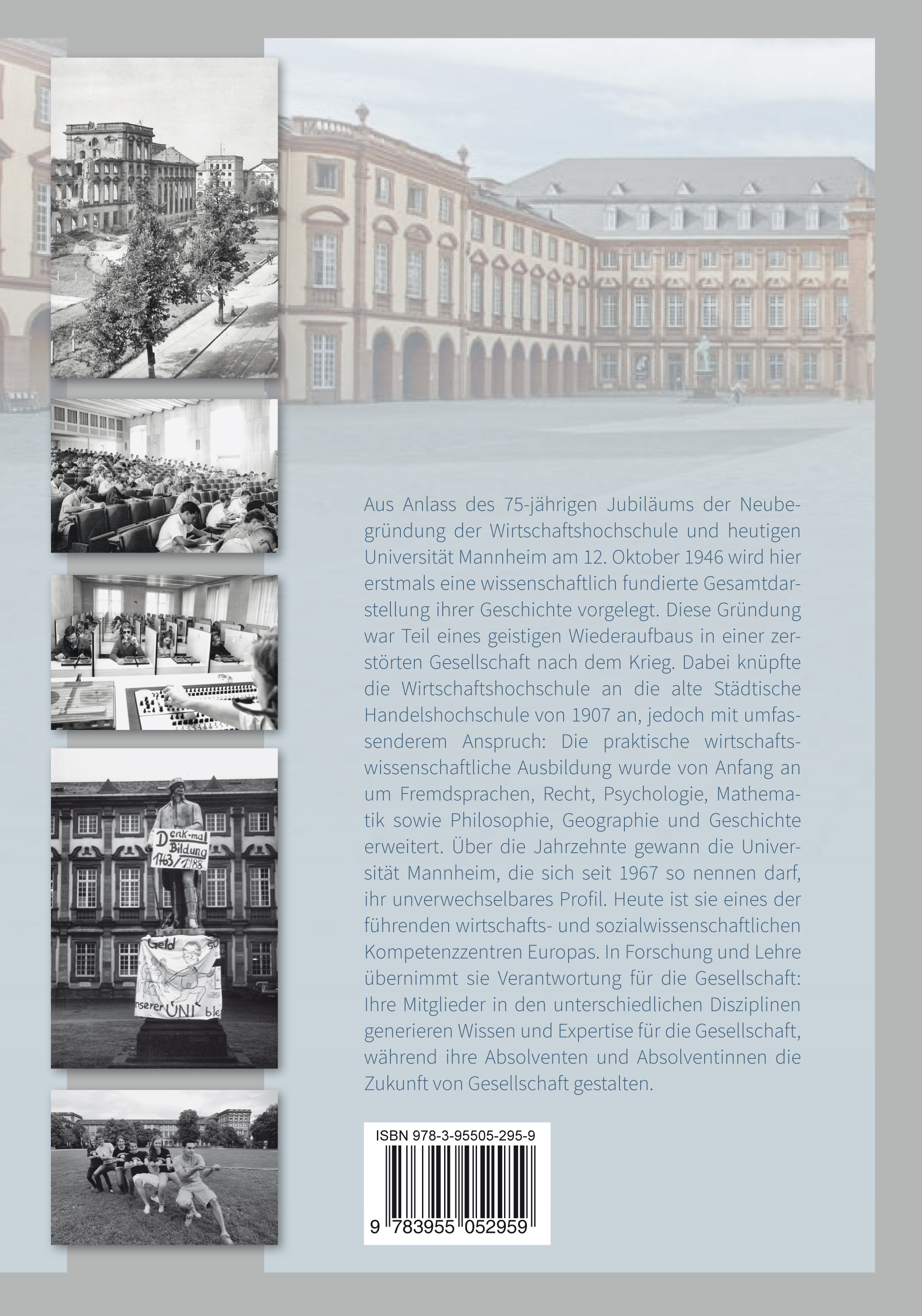 Aus Anlass des 75-jährigen Jubiläums der Neubegründung der Wirtschaftshochschule und heutigen Universität Mannheim am 12. Oktober 1946 wird hier erstmals eine wissenschaftlich fundierte Gesamtdarstellung ihrer Geschichte vorgelegt. Diese Gründung war Teil eines geistigen Wiederaufbaus in einer zerstörten Gesellschaft nach dem Krieg. Dabei knüpfte die Wirtschaftshochschule an die alte Städtische Handelshochschule von 1907 an, jedoch mit umfassenderem Anspruch: Die praktische wirtschaftswissenschaftliche Ausbildung wurde von Anfang an um Fremdsprachen, Recht, Psychologie, Mathematik sowie Philosophie, Geographie und Geschichte erweitert. Über die Jahrzehnte gewann die Universität Mannheim, die sich seit 1967 so nennen darf, ihr unverwechselbares Profil. Heute ist sie eines der führenden wirtschafts- und sozialwissenschaftlichen Kompetenzzentren Europas. In Forschung und Lehre übernimmt sie Verantwortung für die Gesellschaft: Ihre Mitglieder in den unterschiedlichen Disziplinen generieren Wissen und Expertise für die Gesellschaft, während ihre Absolventen und Absolventinnen die Zukunft von Gesellschaft gestalten.