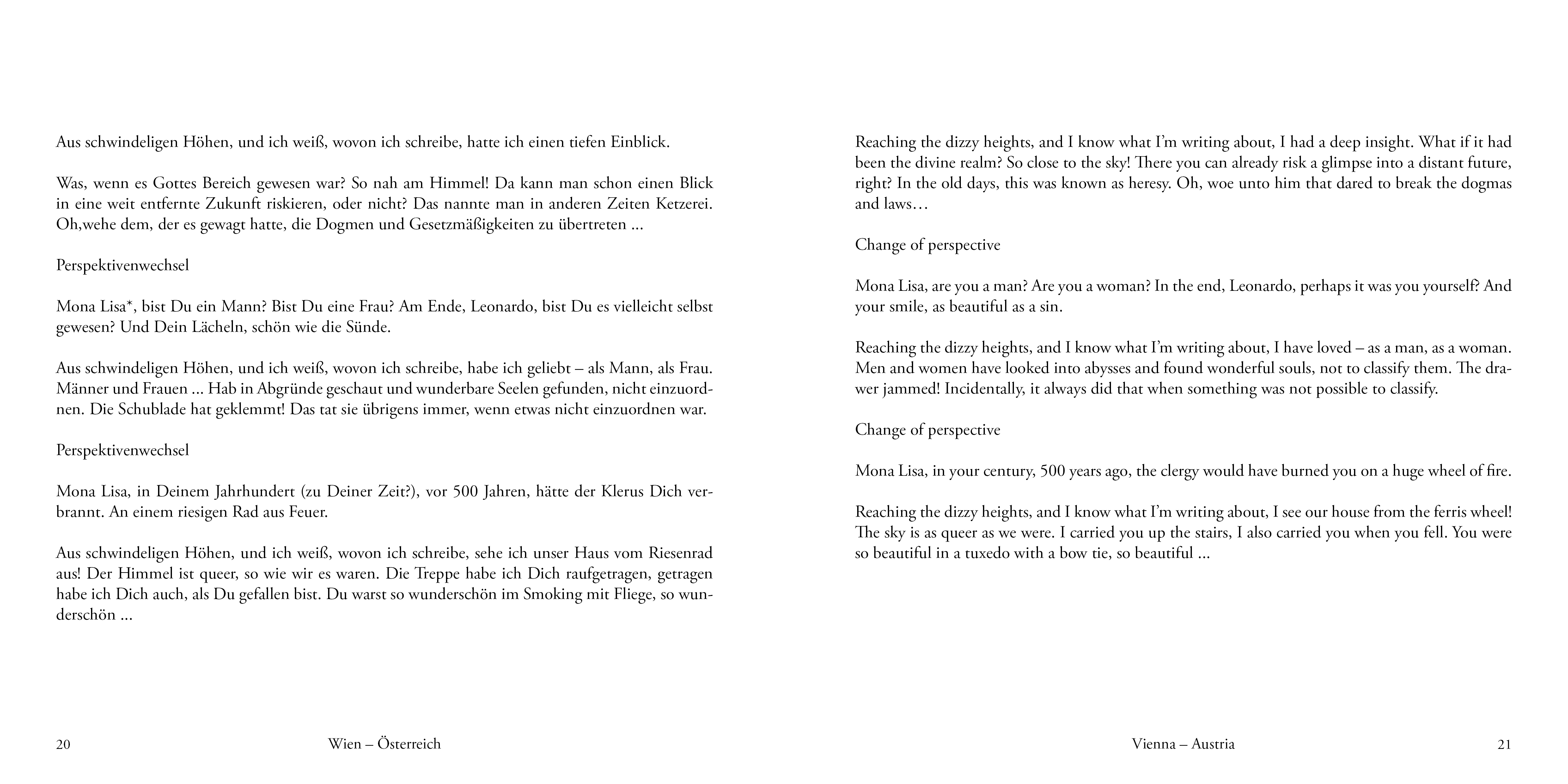 Thomas Mehrhof arbeitet als Ergotherapeut im neurologischen Bereich mit Wachkoma-Patient*innen. Vor dem Outing als transidenter Mensch Frau zu Mann schrieb er noch in der weiblichen Identität zwei unkonventionelle Kinderbücher, die auch Erwachsene lesen dürfen. Geschichten vom Zauberhasen „Herr Pfefferminzky“ und „Herr Pfefferminzky – über dem Regenbogen“ stellen Rollenbilder auf den Kopf und manchmal auch die der Leser*in. Nachdem er sein Motorrad verkaufen musste – die Zeit der Umschulung 2018-2020 war entbehrungsreich – fasste Thomas Mehrhof ein neues Hobby ins Auge: Das Pilgern auf dem Jakobsweg mit dem Fahrrad. Und in Österreich hat er auch mal drei Jahre lang gelebt, übrigens. Und in USA-Land … das war aber vor Trump und immer nur so zwei, drei Monate am Stück – wegen des Visums-Dings. Heute lebt er mit Lebensmensch und Katze in Hamburg. Es handelt sich hier immer noch um dieselbe Katze Lily wie schon zu den Kinderbuchzeiten UND um denselben Lebensmenschen Andrea. Thomas Mehrhof works as an occupational therapist in the neurological field with vegetative state patients. Before coming out as a transgender female-to-male, he wrote two unconventional children’s books, also for adults, while he still had his female identity. His books about a magical rabbit „Mr. Peppermint“ and „Mr.Peppermint – over the rainbow“ turn role models upside down, including sometimes those of the reader. After he had to sell his motorcycle while retraining in 2018 (2020 was a year of hardship and deprivation.), Thomas Mehrhof took on a new hobby: The pilgrimage on the Way of St. James by bicycle. He previously also lived in Austria for three years, as well as in the USA. This was before Trump and only for two or three months at a time, because of visa restrictions. Today he lives in Hamburg with his life partner and his cat, the same cat Lily that he had during the children’s books times AND the same life partner, Andrea.