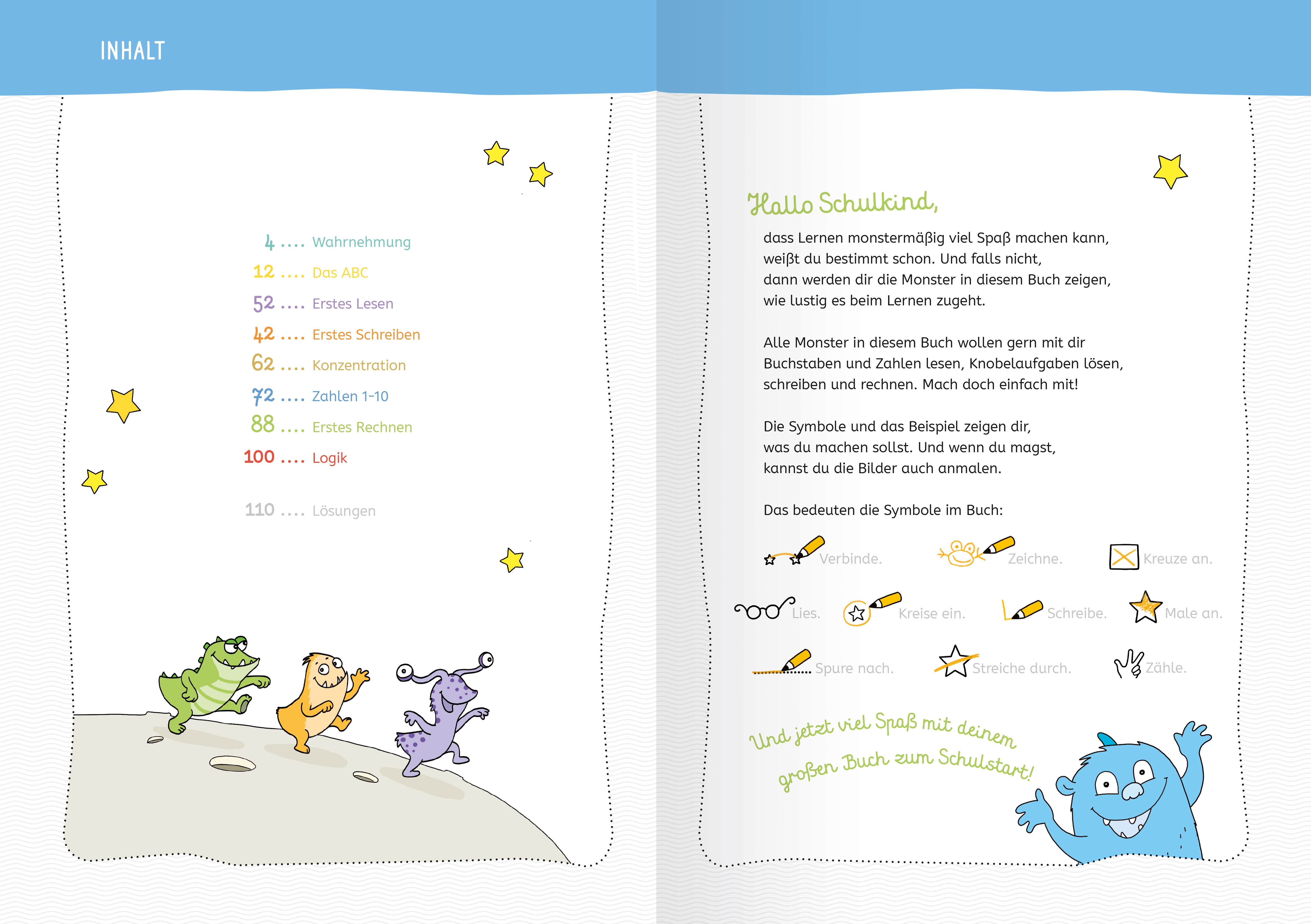 So wünscht man sich einen gelungenen Schulstart: Wichtige Themen der allerersten Schulzeit sind in diesem Band verpackt in kleine Rätselaufgaben. Liebevoll illustrierte Monster führen durch das Buch und zeigen an Beispielen, wie es geht.