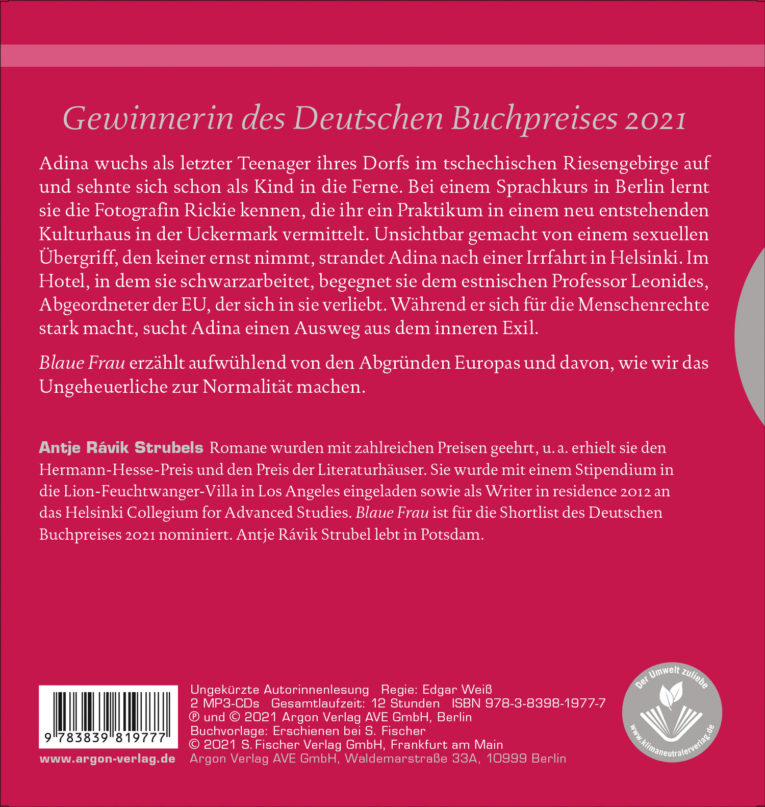 Antje Rávik Strubels Romane wurden mit zahlreichen Preisen geehrt. Für "Blaue Frau" erhielt sie 2021 den Deutschen Buchpreis. Sie wurde mit einem Stipendium in die Lion-Feuchtwanger-Villa in Los Angeles eingeladen sowie als Writer in residence 2012 an das Helsinki Collegium for Advanced Studies. Antje Rávik Strubel lebt in Potsdam.