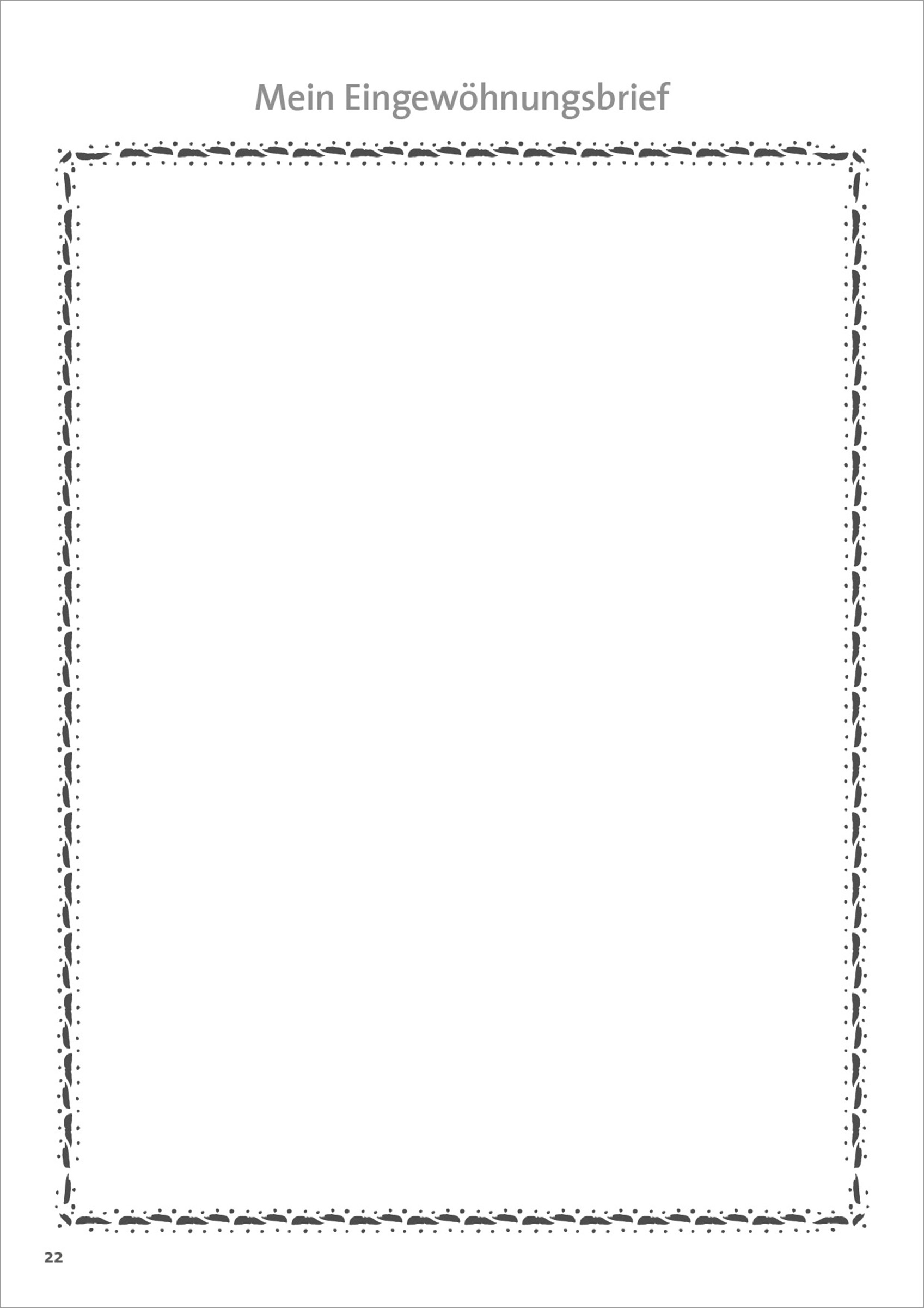 - 10 Heften "Eingewöhnung" zum Ausfüllen, pro Heft für je ein Kind geeignet (jeweils 23 Seiten, geheftet, schwarz-weiß)