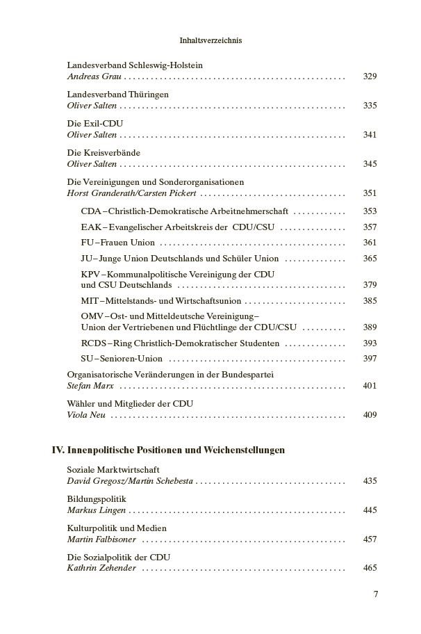 Das "Handbuch zur Geschichte der CDU" gibt einen Überblick über die Entwicklung der Partei seit 1945. Es zeigt ihre programmatische Entwicklung, die Organisationsstrukturen, die Geschichte ihrer Landesverbände und ausgewählte Politikfelder. Umfangreiche Literaturangaben, eine Auswahlbibliographie und Quellenhinweise helfen bei künftigen Forschungen.