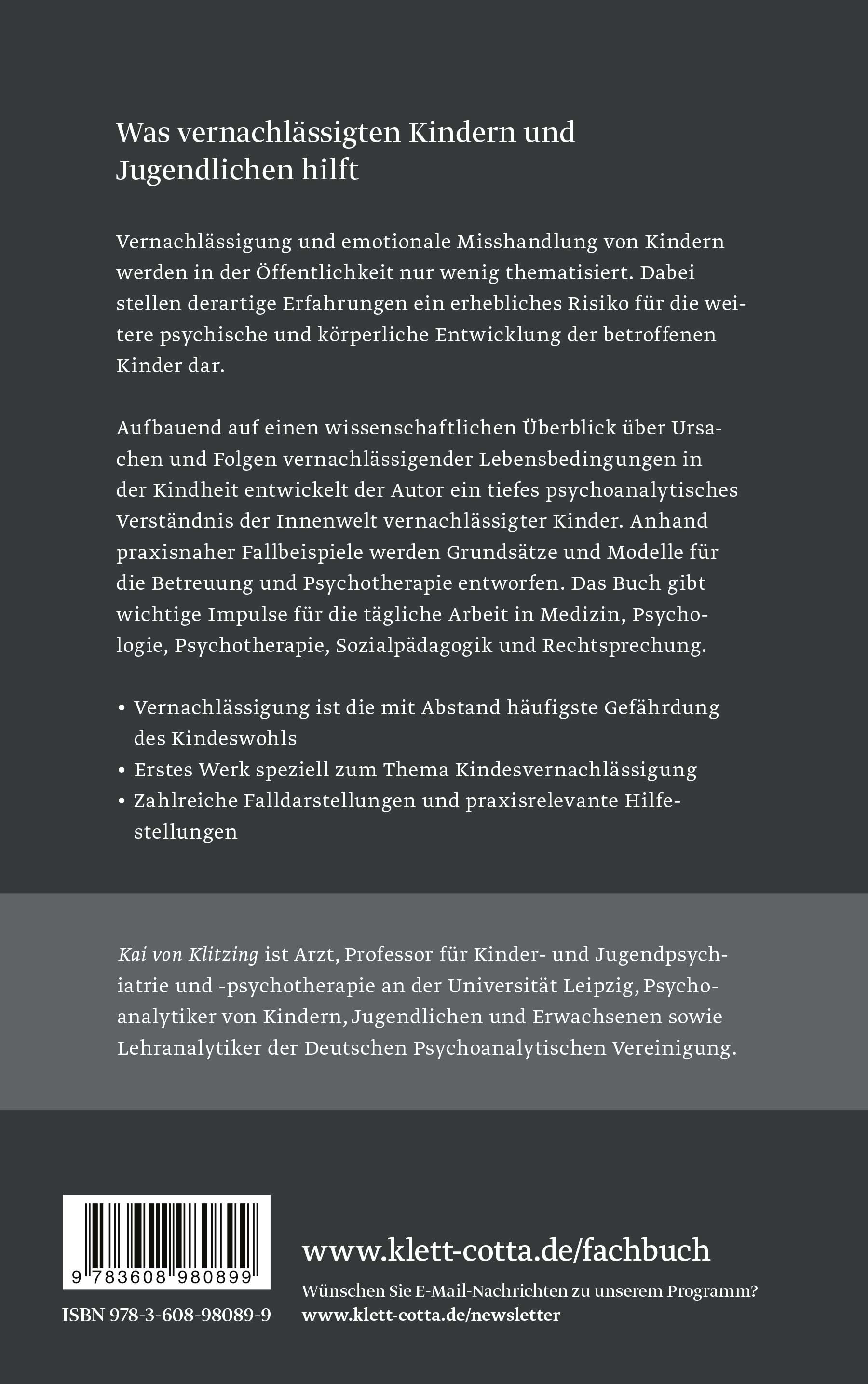 Das Buch gibt einen umfassenden Überblick über Definition, Häufigkeit, Ursachen und Folgen von Vernachlässigung und emotionaler Kindesmisshandlung. Praxisnahe Fallbeispiele und wissenschaftlichen Befunde ermöglichen ein psychoanalytisches Verständnis der Innenwelt vernachlässigter Kinder. Schließlich führt das Buch in psychoanalytisch fundierte Grundsätze erfolgreicher Betreuung und Behandlung ein und gibt PraktikerInnen in Medizin, Psychologie und Sozialpädagogik wichtige Hinweise für Beratung und Therapie.