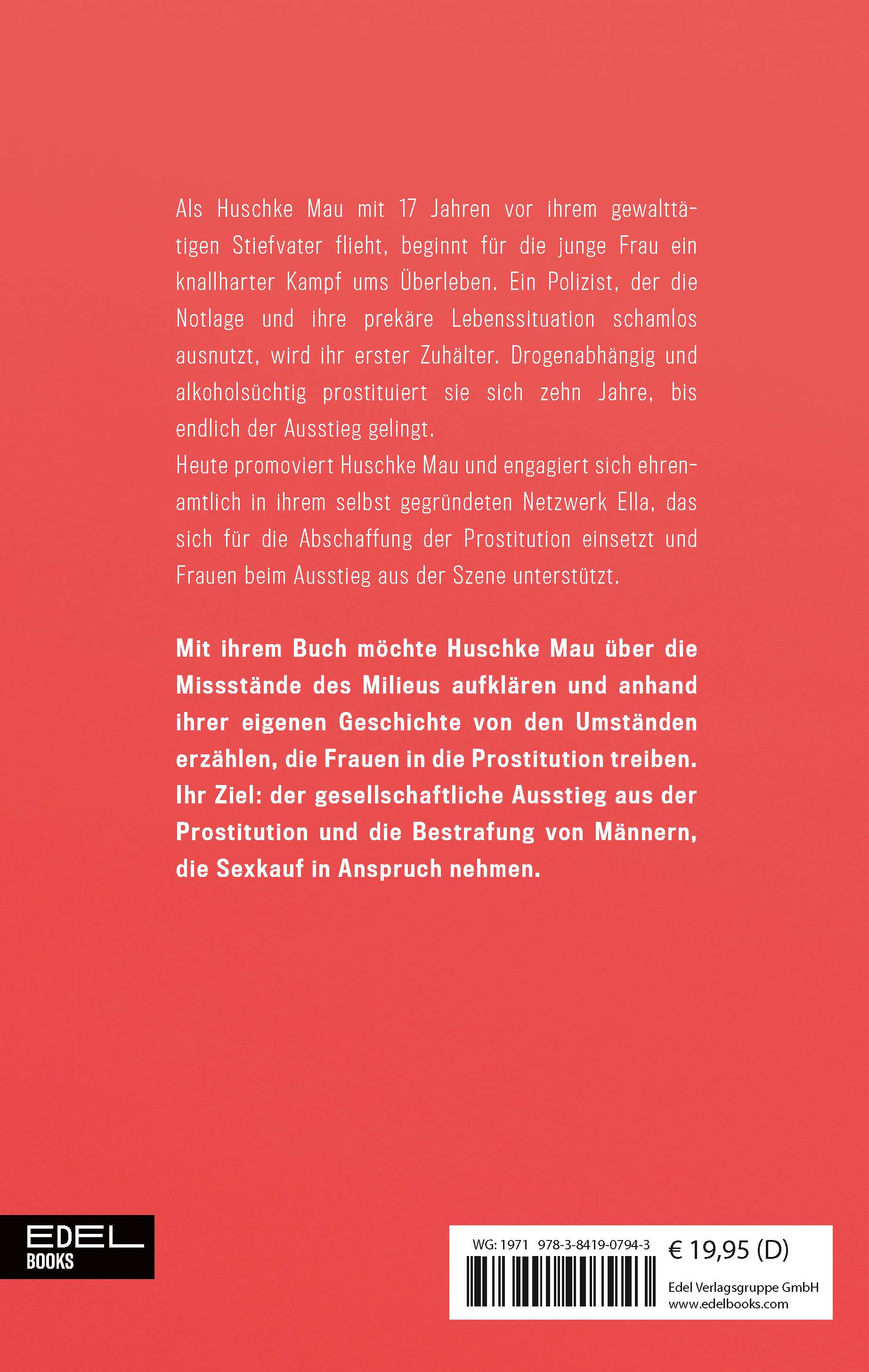 Mit 17 flüchtet Huschke Mau aus ihrem gewalttätigen Elternhaus und weiß nicht aus noch ein. Mittellos und ohne Unterstützung rutscht sie in die Prostitution und damit einhergehend in eine Alkohol- und Drogenabhängigkeit. Ihr erster Zuhälter: ein Polizist. Zehn Jahre vergehen, bis sie sich aus diesem Teufelskreis befreien kann.