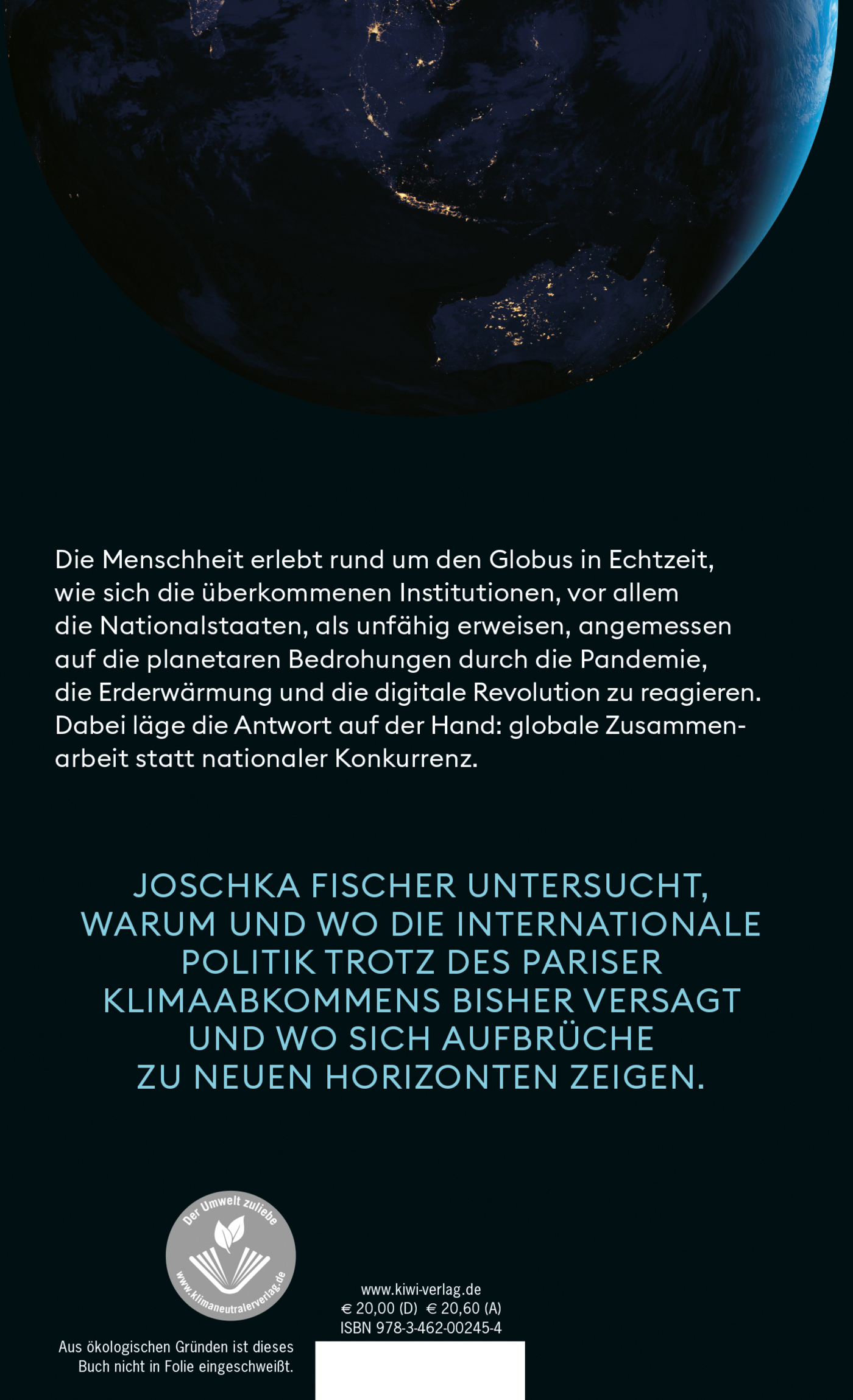Joschka Fischer zeigt in seinem neuen Buch, dass sich die Wirtschaft weltweit, wenn auch zu langsam auf die Dekarbonisierung der Energiegewinnung zur Erhaltung unserer Lebensgrundlagen einlässt. Und er untersucht, warum und wo die internationale Politik trotz des Pariser Klimaabkommens bisher versagt und wo sich Aufbrüche zu neuen Horizonten zeigen.