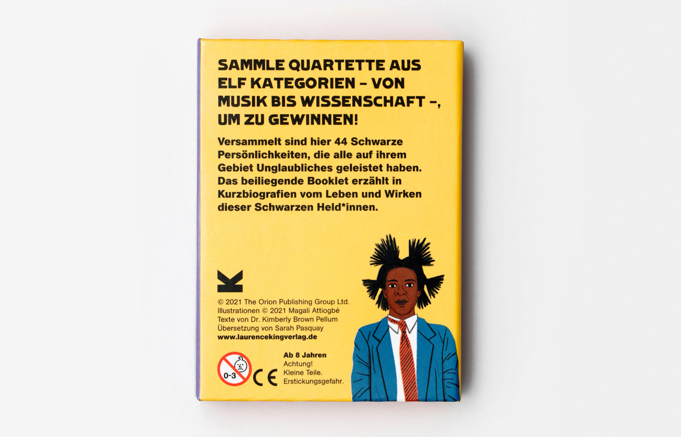 | Schlagworte | Aktivität • Angela Davis • Beyonce • Biografien • BIPOC • Familienspiel • Lernen • Literatur • Mandela • People of Color • poc • Politik • Porträt • Quartettspiel • Sport • Wissen • Wissenschaft |